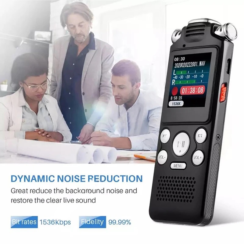 Máy ghi âm kỹ thuật số đơn giản đầy phong cách này có thể được mang đi bất cứ đâu để ghi lại âm thanh trong các bài giảng, cuộc họp, cuộc trò chuyện và