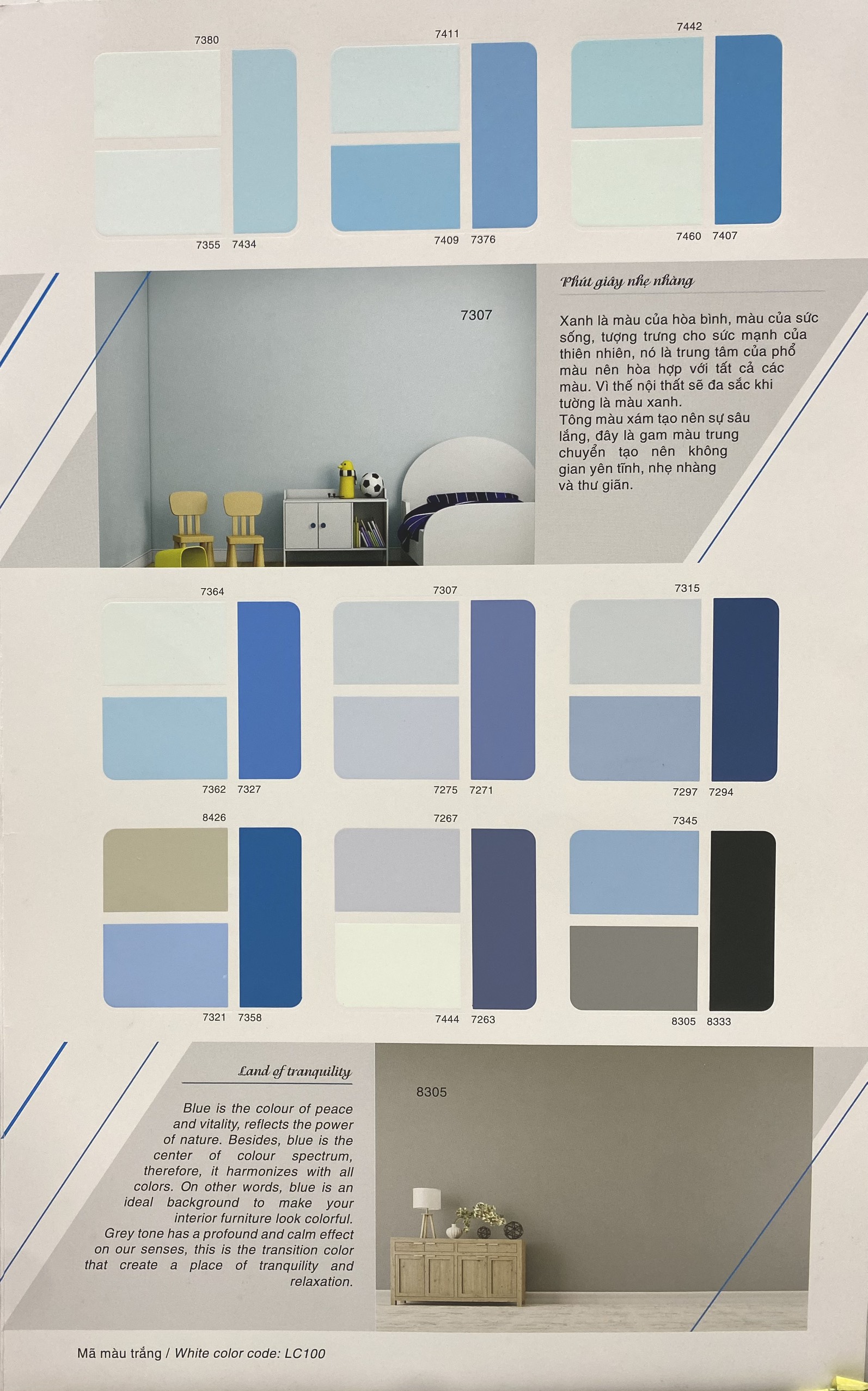 Ngược lại, việc lựa chọn sai màu sơn sẽ gây ra cảm giác bí bách, chật chội, rối mắt và ảnh hưởng không nhỏ đến tâm trạng của các thành viên trong nhà. Phối màu sơn phào chỉ trần nhà đẹp thu hút, ấn tượng cho thấy chủ nhà là người có gu thẩm mỹ rất tinh tế, am hiểu về kiến trúc và mỹ thuật. Còn gì tuyệt vời hơn khi nhận được lời khen ấm áp đến từ các vị khách đến thăm ngôi nhà. Theo kinh nghiệm của shop thì phối màu theo cùng tông màu(xanh đi với xanh đậm hơn, xám đi với xám đậm hơn…) kết hợp với màu trắng sẽ làm ngôi nhà sẽ nổi và đẹp hơn ví dụ: Tường màu xanh 7411 thì màu điểm nhấn mảng lớn hơn (nếu có) là 7409 và màu chỉ sẽ là 7376 kết hợp với màu trắng sẽ làm ngôi nhà nổi bật tinh tế , đẹp sang trọng và hiện đại. Dòng sơn chỉ Toa 4 Seasons Tropic shield ngoại thất chống bám bụi Sơn nước ngoại thất TOA 4 Seasons Tropic Shield là sơn nước dành cho ngoài trời, được sản xuất từ nhựa nhũ tương Acrylic với các ưu điểm: Màng sơn bóng mờ với độ phủ cao. Khả năng chống chịu tốt với điều kiện thời tiết khắc nghiệt: bền màu, chống phấn hóa, chống rong rêu nấm mốc. Ngoài ra, phụ gia chống bám bụi 3M Fluorosurfactants giúp màng sơn sáng đẹp theo thời gian.