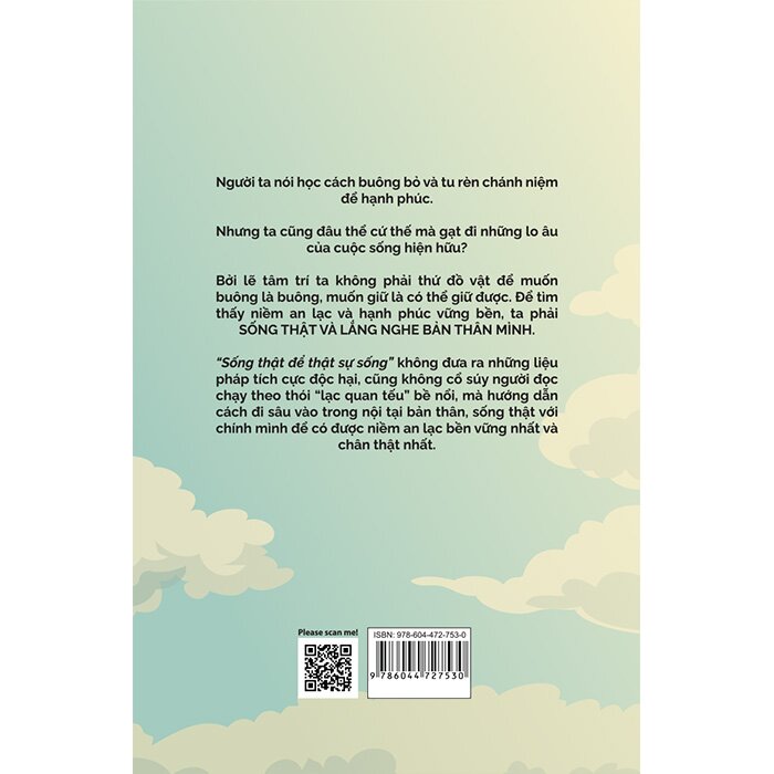 Sống Thật Để Thật Sự Sống Người ta nói học cách buông bỏ và tu rèn chánh niệm để hạnh phúc. Nhưng ta cũng đâu thể cứ thế mà gạt đi những lo âu của cuộc sống hiện hữu? Bởi lẽ tâm trí ta không phải thứ đồ vật để muốn buông là buông, muốn giữ là có thể giữ được. Để tìm thấy niềm an lạc và hạnh phúc vững bền, ta phải SỐNG THẬT VÀ LẮNG NGHE BẢN THÂN MÌNH. “Sống thật để thật sự sống” không đưa ra những liệu pháp tích cực độc hại, cũng không cổ súy người đọc chạy theo thói “lạc quan tếu” bề nổi, mà hướng dẫn cách đi sâu vào trong nội tại bản thân, sống thật với chính mình để có được niềm an lạc bền vững nhất và chân thật nhất.