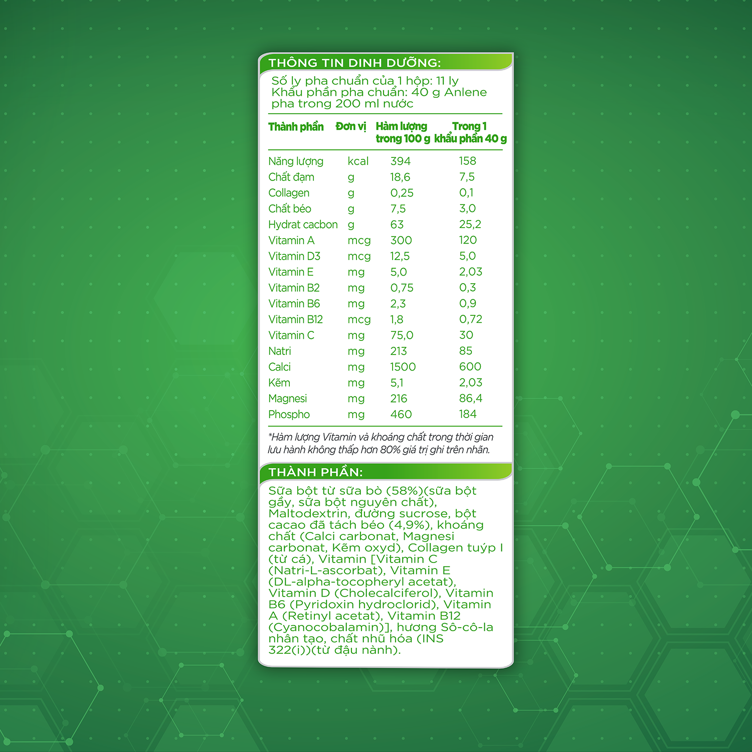 - Sữa Anlene Gold Vị Cà-phê Thành phần