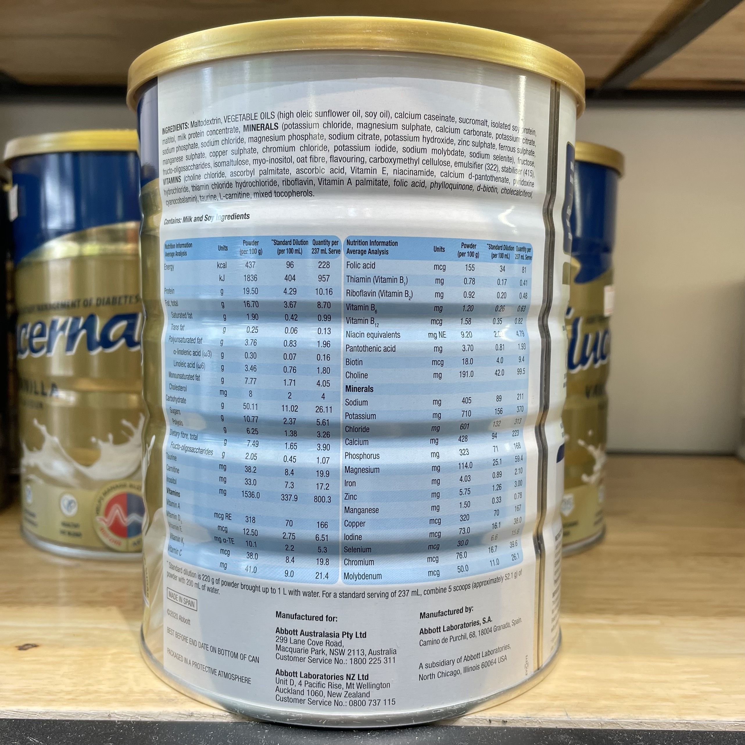 - Sữa Glucerna ÚC cung cấp đầy đủ các vitamin và khoáng chất cần thiết như: