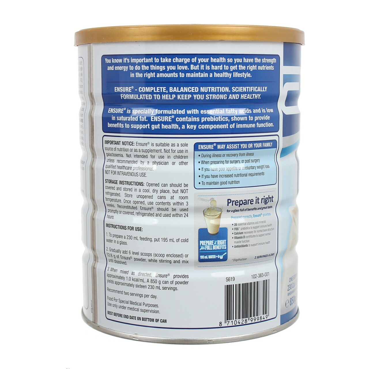 Ensure đã pha phải dùng ngay hay đậy kín cho vào tủ lạnh và dùng trong vòng 24 giờ.