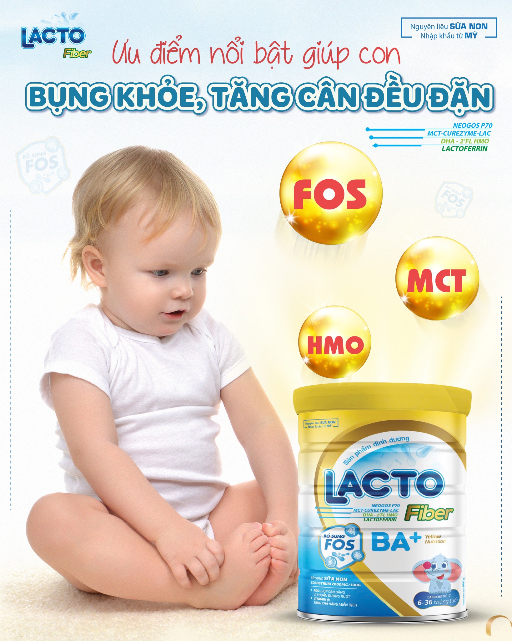 Sữa bột Lacto Fiber BA+ là sản phẩm dinh dưỡng hoàn hảo, dành riêng cho trẻ từ 6-36 tháng tuổi.Ngoài ra, sữa này còn cung cấp đầy đủ dưỡng chất cần thiết cho sự phát triển toàn diện của trẻ. Với hương vị thơm ngon, dễ uống, sản phẩm phù hợp với khẩu vị của trẻ nhỏ. Lacto Fiber BA+ đã được kiểm nghiệm và chứng nhận an toàn cho sức khỏe của trẻ. Thành phần chính bao gồm FOS, Neogos P70, MCT, Lysine, HMO và sữa non. FOS là chất xơ giúp tăng cường hệ vi sinh đường ruột, ngăn ngừa táo bón. Neogos P70 cung cấp năng lượng và dưỡng chất thiết yếu, giúp trẻ phát triển khỏe mạnh. MCT hỗ trợ hấp thu nhanh chóng và cung cấp năng lượng kịp thời. Lysine là axit amin thiết yếu, giúp tăng cường hệ miễn dịch và phát triển cơ bắp. HMO là thành phần quan trọng giúp tăng cường hệ miễn dịch, bảo vệ trẻ khỏi các tác nhân gây bệnh. Sữa non chứa kháng thể tự nhiên, cung cấp bảo vệ toàn diện cho trẻ. Vậy nên, Sản phẩm này giúp trẻ phát triển toàn diện và khỏe mạnh, hỗ trợ tiêu hóa tốt hơn. Lacto Fiber BA+ được đóng gói tiện lợi, dễ sử dụng và bảo quản. Lacto Fiber BA+ hỗ trợ phát triển chiều cao và cân nặng, tăng cường hệ miễn dịch và sức đề kháng. Sản phẩm giúp trẻ có hệ tiêu hóa khỏe mạnh, phát triển toàn diện về thể chất và tinh thần. Lacto Fiber BA+ là sự lựa chọn hoàn hảo cho các bậc cha mẹ, mang đến giải pháp dinh dưỡng hiệu quả cho con yêu.Hơn nữa, Sản phẩm này được sản xuất theo tiêu chuẩn chất lượng cao, đảm bảo an toàn và chất lượng. Hãy chọn Lacto Fiber BA+ để đảm bảo con bạn nhận được dinh dưỡng tốt nhất. Sản phẩm hỗ trợ phát triển toàn diện, giúp trẻ có một khởi đầu khỏe mạnh và hạnh phúc.