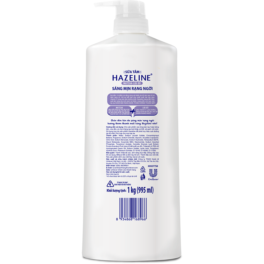 BAO BÌ THAY ĐỔI THEO TỪNG ĐỢT NHẬP HÀNG Sữa tắm Hazeline Dưỡng Thể Trắng Sáng & Mịn Da Từ Thiên Nhiên Matcha Lựu Đỏ 1kg Sữa tắm Hazeline hoàn toàn mới, với bộ ba