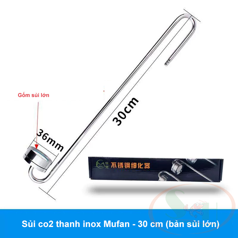 - Đường kính gốm sủi: 20 mm (thanh 20cm), 31 mm (thanh 25 - 30 - 35 - 40cm). HƯỚNG DẪN SỬ DỤNG SỦI CO2 THANH INOX MUFAN: