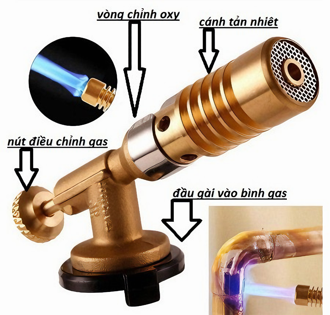 Công dụng: hàn nối ống đồng trong ngành cơ điện lạnh hoặc các mối hàn kim loại mềm trong cơ khí, nhóm than nhóm lửa nấu nướng, làm sạch lông gia súc gia cầm, làm bong tróc các mảnh sơn...