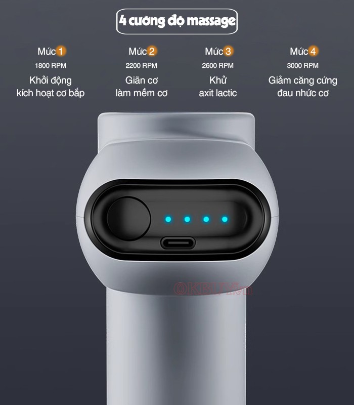 Súng massage cầm tay Booster Boluojun MINI V2 New có 4 cường độ từ thấp đến cao. Cường độ đa dạng đáp ứng được mọi nhu cầu matxa của người dùng: kích hoạt cơ bắp trước khi tập luyện, thư giãn cơ bắp sau khi tập luyện, loại bỏ đau nhức và cứng cơ, làm săn chắc và tạo cơ
