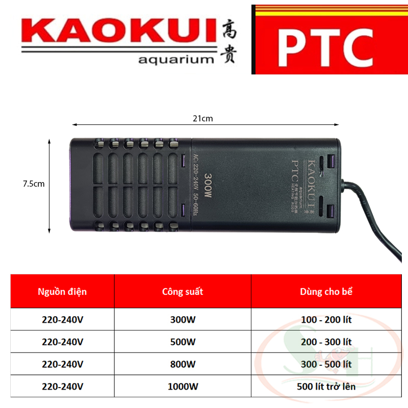 - Sưởi KaoKui PTC chỉ sử dụng cho bể cá nước ngọt, không dùng sản phẩm trong bể nước mặn.