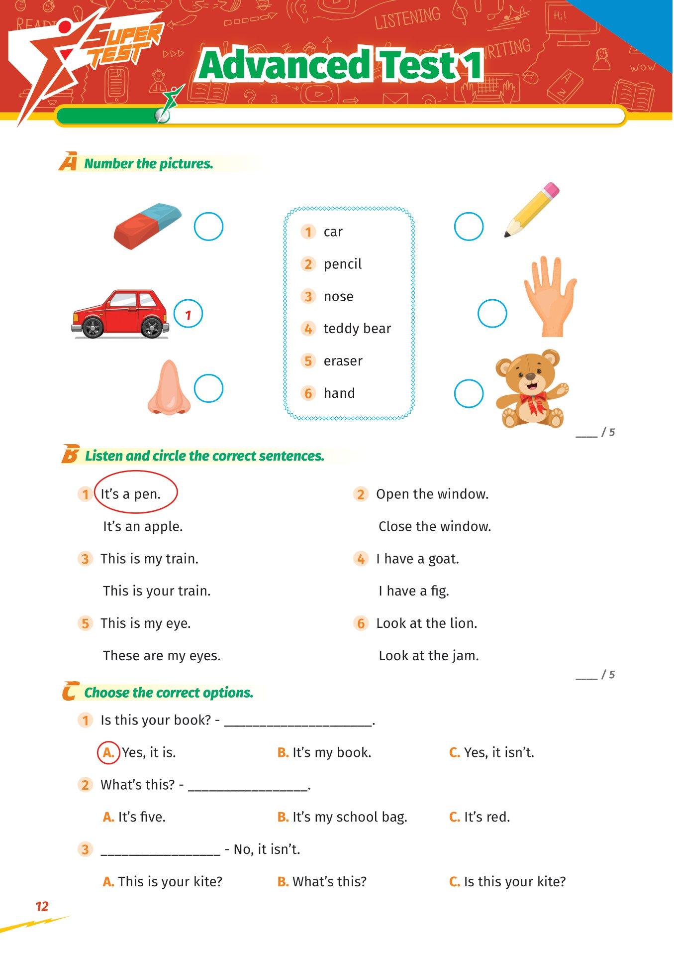 Với Bộ sách Super Test – Đề kiểm tra nhanh Tiếng Anh cho học sinh, bố mẹ sẽ giúp con tiến bộ từng ngày, tự tin với khả năng ngôn ngữ của m.ình khi ôn luyện Tiếng Anh bởi các bài tập về 4 kỹ năng: Nghe – Nói – Đọc – Viết được liên kết với nhau theo logic của bài học.