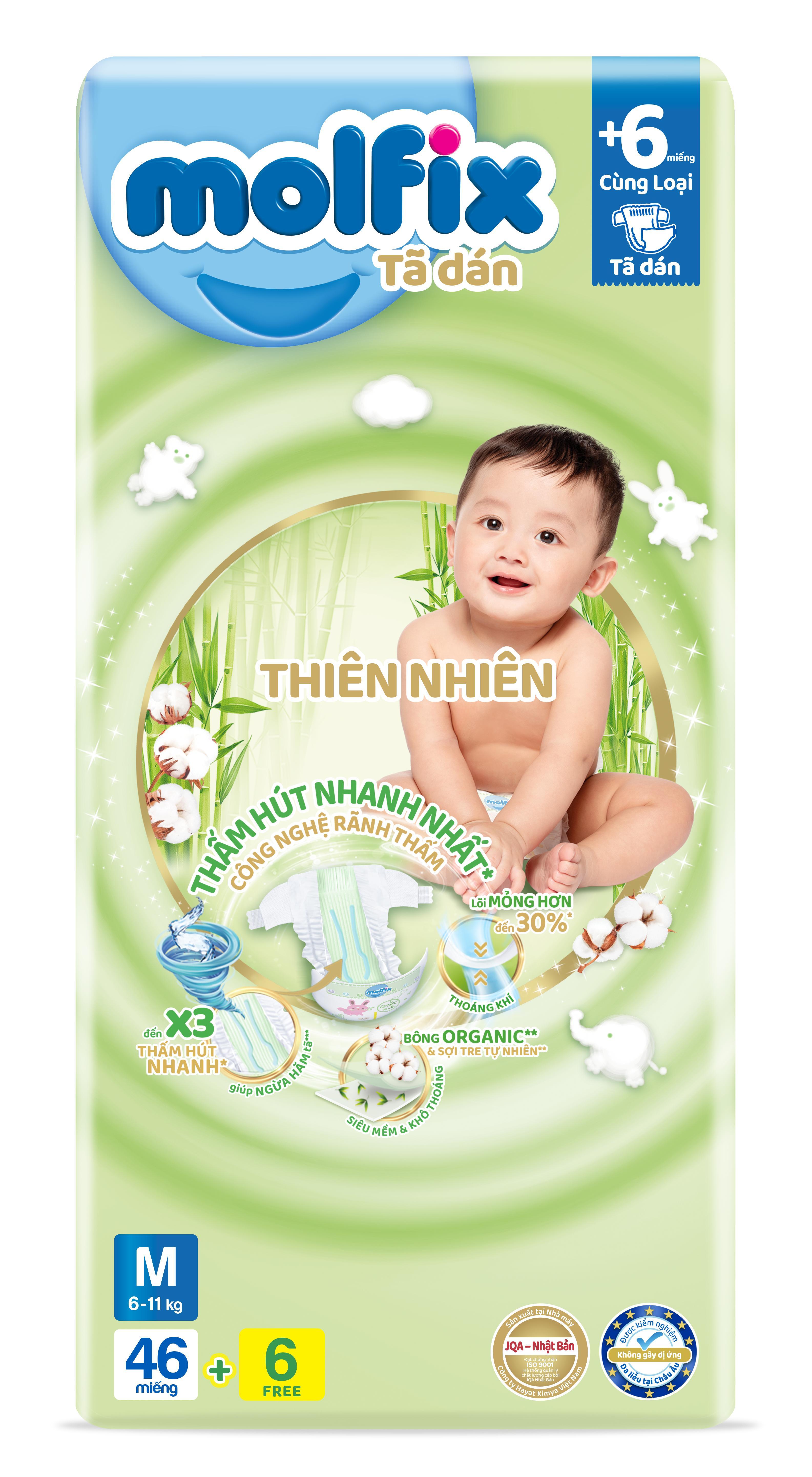 ✨Tã/bỉm dán Molfix Thiên nhiên Jumbo M (6kg - 11kg) - Gói 46+6 miếng