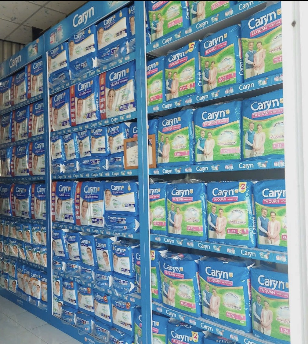 Mô Tả Sản Phẩm Tã Dán người lớn Caryn Gói Lớn Tã dán Siêu thấm Caryn cải tiến mới với “Đệm thấm xanh" chuyên biệt tại vùng xương cụt, với các hạt thấm hút tăng
