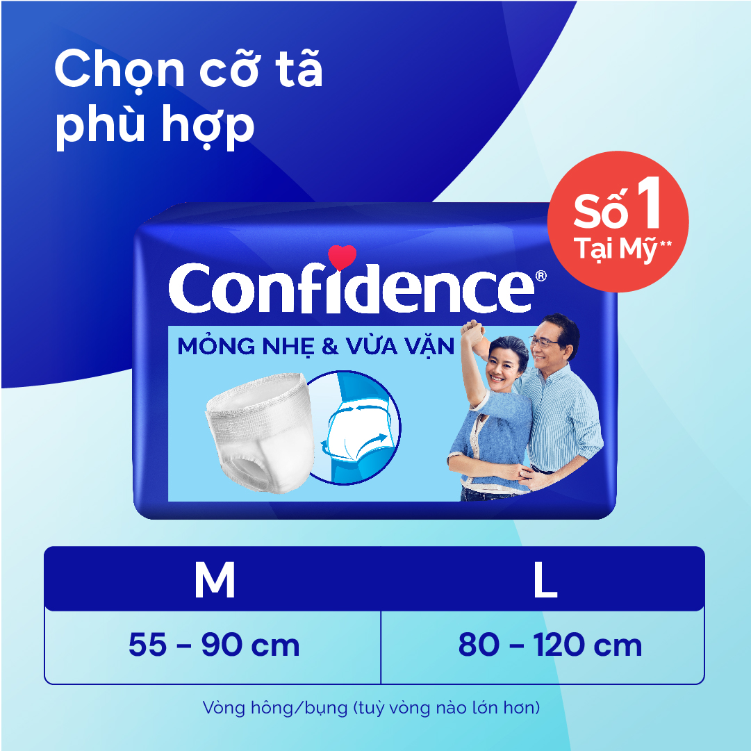 Tã quần người lớn Confidence Slim&Fit mỏng nhẹ vừa vặn size M gói 16+2 miếng Giới thiệu - Tã quần người lớn Confidence Slim&Fit mỏng nhẹ vừa vặn size M gói 16+2 miếng - an