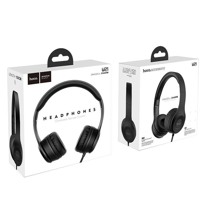 Tai Nghe Chụp Tai Hoco W21 Âm Thanh Trung Thực Êm Ái Cáp Cắm Âm Thanh Mic 3.5mm Dài 1,2M