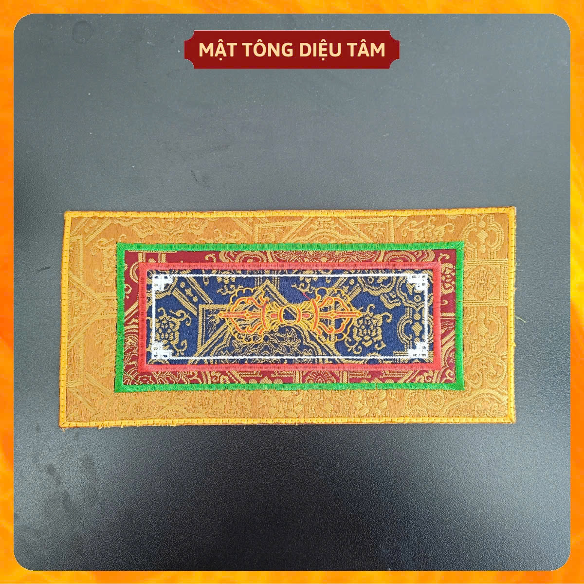 Tấm lót tượng, pháp khí Khăn gấm chuông chày kim cang chữ nhật biểu tượng pháp luân và chùy kim cang Mật Tông Diệu Tâm