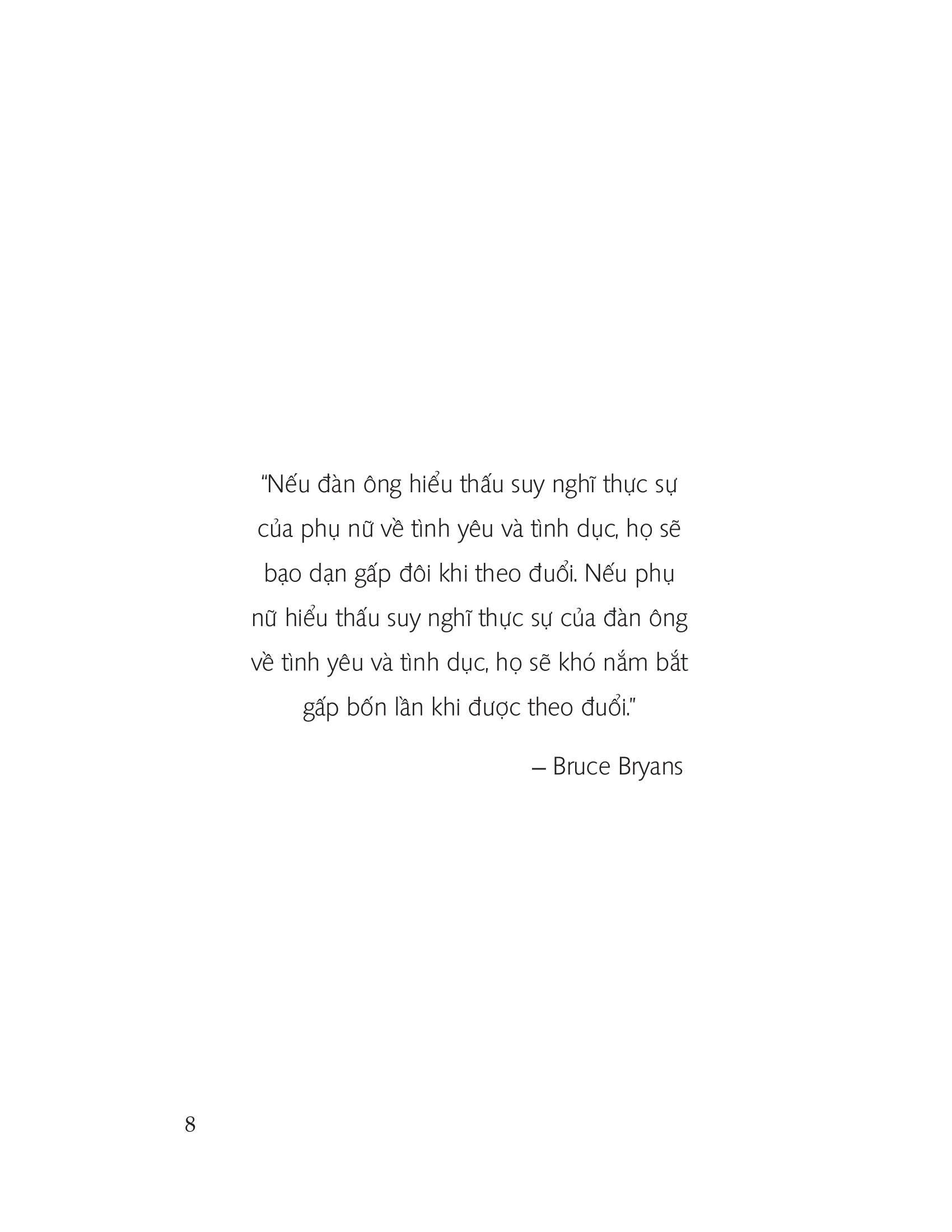 Khi nói đến việc tìm kiếm một người bạn đời phù hợp cho một mối quan hệ nghiêm túc và cam kết, một trong những điều đàn ông mong muốn nhất ở phụ nữ là sự tự chủ, hay nói cách khác là sự đĩnh đạc của phụ nữ. Sự tự chủ ấy sẽ làm tăng giá trị bản thân của người phụ nữ lên gấp nhiều lần. Trong tình yêu, những người phụ nữ ấy luôn biết duy trì sự bí ẩn, sự quyến rũ nữ tính của mình để mời gọi đàn ông theo đuổi cô ấy say đắm. Người ta thường nói rằng: “Phụ nữ yêu bằng tai, đàn ông yêu bằng mắt.” Nếu bạn muốn thu hút và duy trì sự chú ý của một người đàn ông có phẩm chất cao - một người có hoãi bão, cam kết một mối quan hệ lâu dài, hay chỉ đơn giản là muốn biết rõ điều mình muốn về người ấy,… thì cuốn sách này là dành cho bạn.