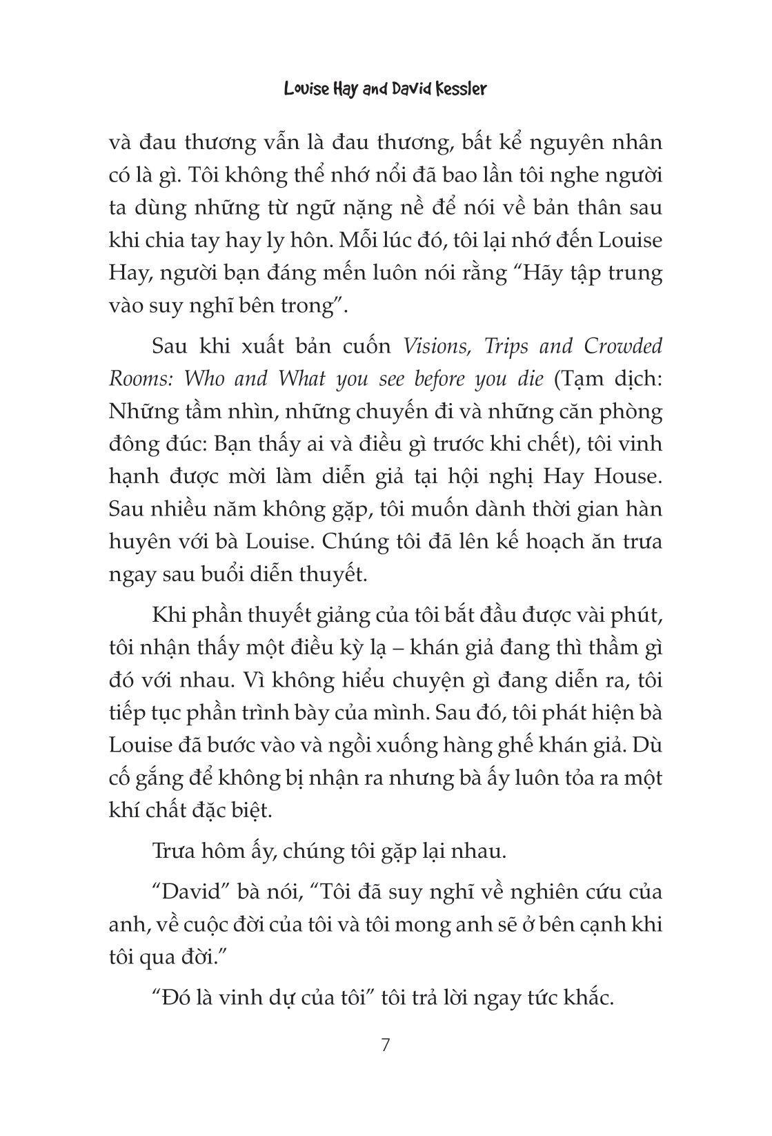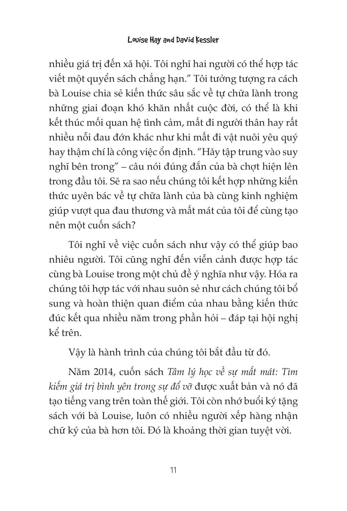 Bạn sẽ dần thoát được nỗi đau này nhanh chóng cho dù là cuộc chia tay đau đớn, cuộc ly hôn tồi tệ hay cái chết đau thương nhất. Không phải né tránh hay chạy trốn nỗi đau thay vào đó là để bản thân trải qua và cho phép m.ình sống cuộc đời mới với tình yêu thương, thay vì nỗi bi ai.