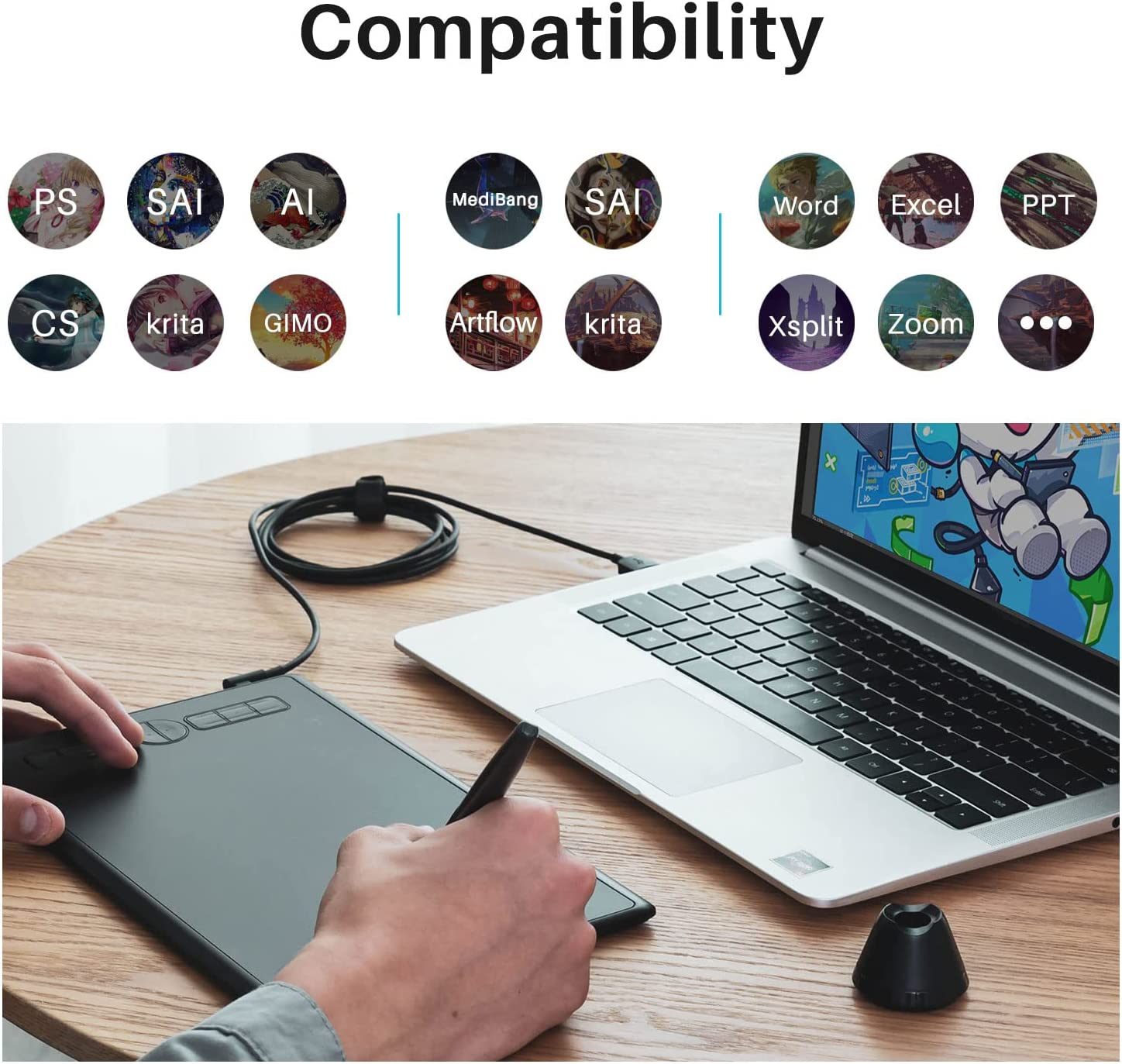 ✧ Bảng viết điện tử Huion H580X là sản phẩm dành cho họa sĩ mới làm quen với digital drawing, hỗ trợ và tương thích với nhiều phần mềm chuyên dụng như: Photoshop, Illustrator, Weaver