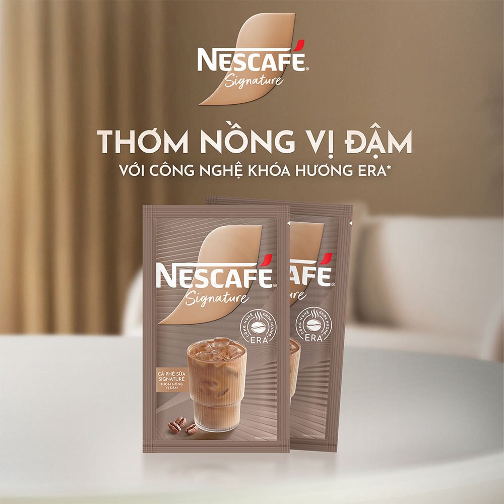 BỘ SẢN PHẨM BAO GỒM: Cà phê sữa NESCAFÉ Signature Hộp 10 gói THƠM NỒNG VỊ ĐẬM ĐẶC ĐIỂM NỔI BẬT: [MỚI] Cà phê sữa NESCAFÉ Signature - Thơm nồng vị đậm NESCAFÉ tự hào