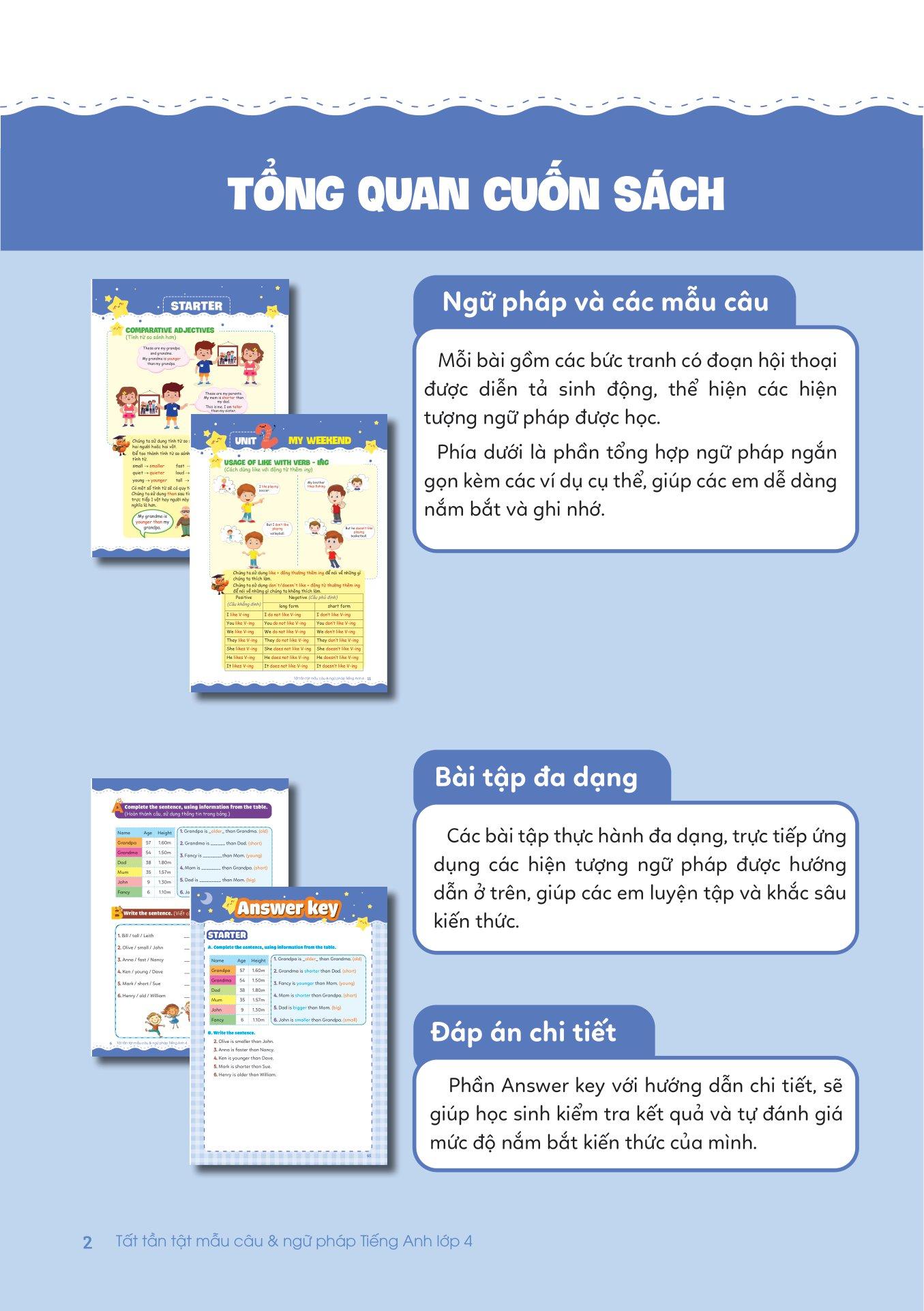 Tiếng Anh ngày càng trở nên quan trọng, nhất là đối với các em học sinh tiểu học - đối tượng mới bắt đầu được tiếp cận và học tập ngoại ngữ. Nhằm giúp các em học sinh tiểu học có một tài liệu phù hợp để tự học, tự rèn luyện, xây dựng kiến thức nền tảng môn Tiếng Anh, bộ sách Tất tần tật mẫu câu và ngữ pháp Tiếng Anh đã ra đời.