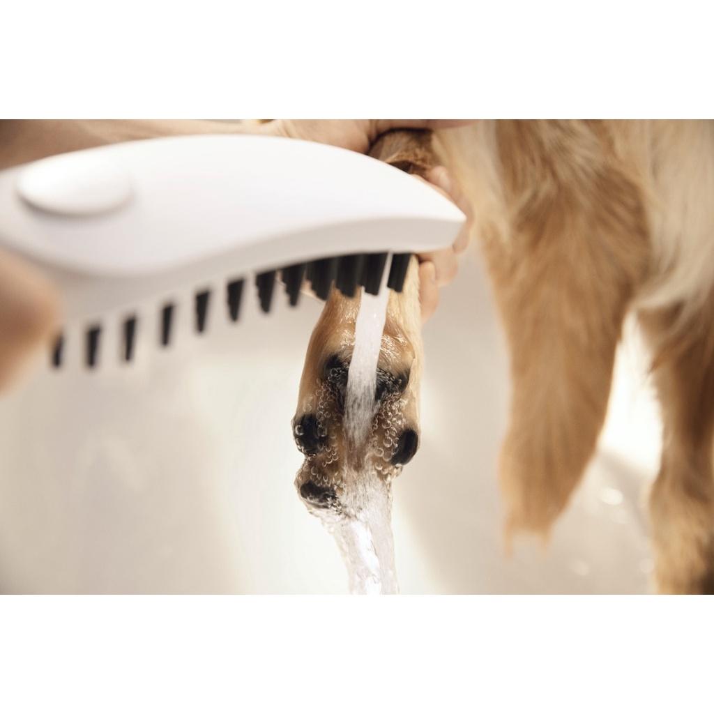Các tính năng hữu ích giúp bạn tắm cho chó dễ dàng hơn. Tay cầm được thiết kế công thái học giúp chùi rửa dễ dàng. Để sử dụng, hãy vuốt ve chó của bạn bằng đầu vòi hoa sen hình bàn chải. Các đầu phun linh hoạt sẽ cung cấp cho chú chó của bạn một buổi mát-xa nhẹ nhàng và dễ chịu. Nút ở mặt dưới của tay cầm chuyển đổi các tính năng. Khi nhấn, toàn bộ lượng nước sẽ được phun ra. Lượng nước sẽ tự động giảm đi nếu bạn buông vòi sen.