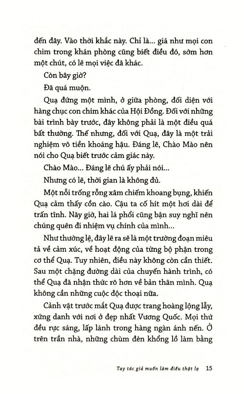 Trong quyển 2 này - Tay Tác Giả Muốn Làm Điều Lạ - hành trình của Quạ có thêm những người bạn mới và sự khốc liệt tăng dần lên đến đỉnh điểm. Bạn đọc vừa theo dõi câu chuyện vừa khám phá cách thức xây dựng cấu trúc bài thuyết trình bằng cả ngôn ngữ nói lẫn viết để cuối cùng có thể thuyết phục được người nghe xoay chuyển ý muốn của họ theo một chiều hướng khác.