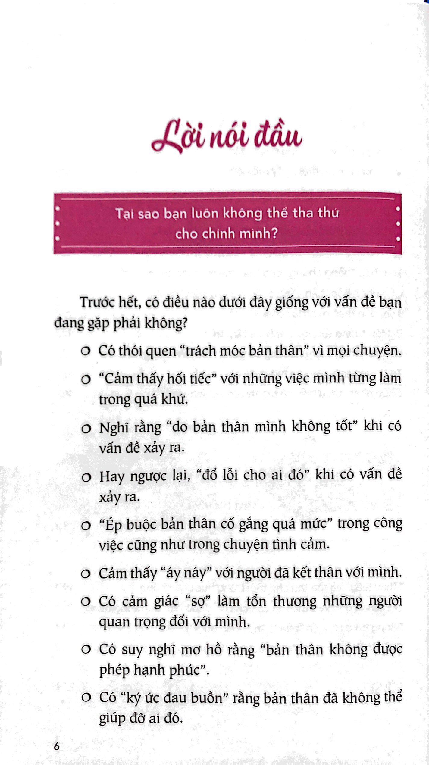 - Louise Hay Bạn có thường tự trách bản thân vì mọi chuyện, hay ngược lại, đổ lỗi cho người khác khi có vấn đề xảy ra không? Bạn đang cố gắng quá mức trong công việc cũng như trong chuyện tình cảm chỉ vì sợ làm đối phương thất vọng ? Đây là những dấu hiệu cho thấy bạn đang cảm thấy tội lỗi. Ai trong chúng ta cũng đều mang cảm giác tội lỗi, dù ít hay nhiều. Nhưng về lâu về dài, cảm giác này có thể khiến ta tự làm khổ bản thân và không cho phép m.ình được hạnh phúc Với hơn 20 năm kinh nghiệm tư vấn cho hàng ngàn khách hàng, Hiroyuki Nemoto sẽ giúp bạn hiểu rõ hơn về nguyên nhân dẫn đến cảm giác tội lỗi, đồng thời cung cấp nhiều phương pháp hữu ích cùng những ví dụ thực tế để bạn có thể buông bỏ cảm giác này, tha thứ cho chính m.ình và hướng tới việc xây dựng một cuộc sống hạnh phúc