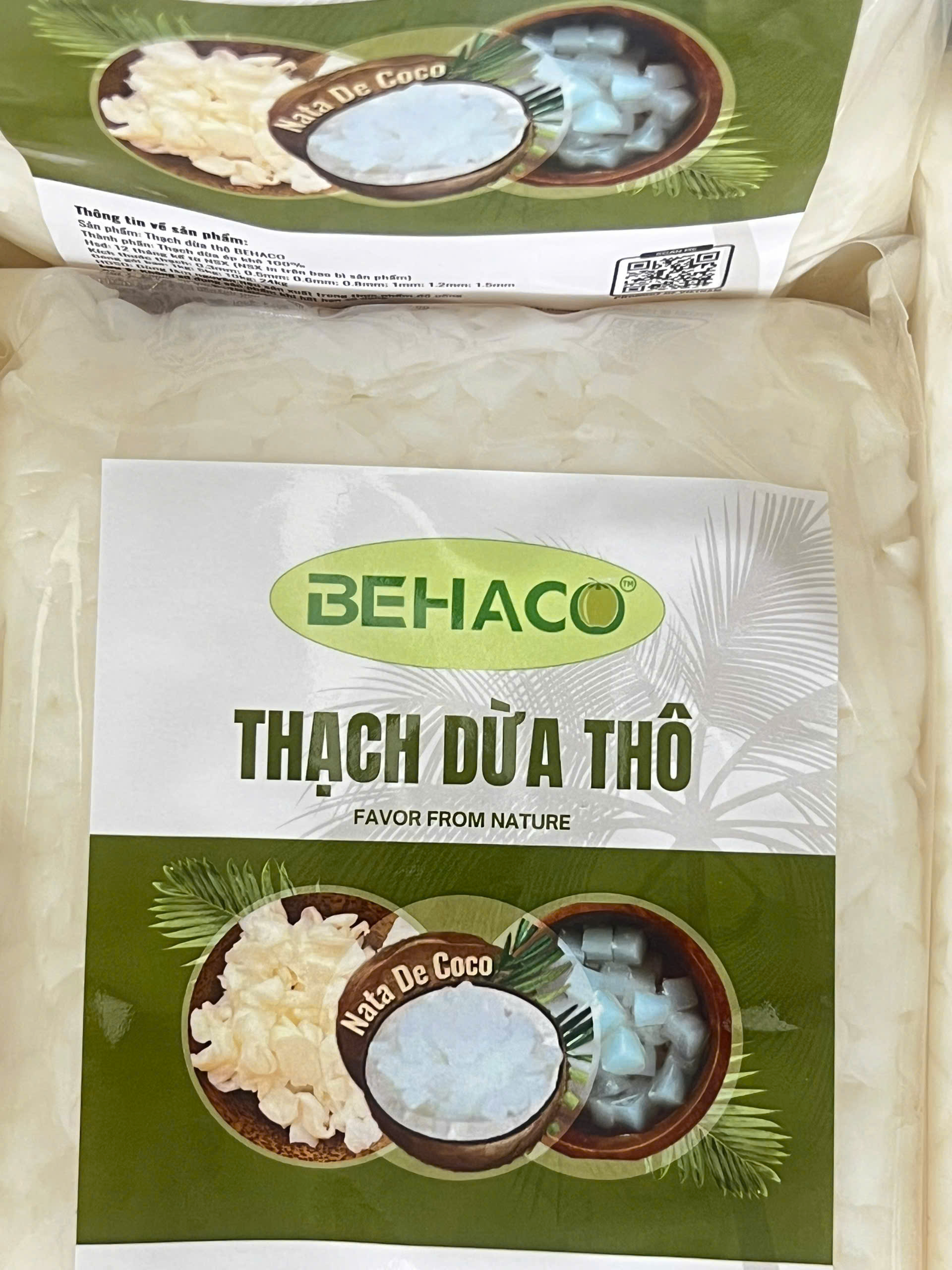 THẠCH DỪA ÉP KHÔ BEHACO - 3 LY Thạch dừa thô là lớp Hemicellulose, sản phẩm sinh khối đươc tạo thành bởi sự lên men của vi khuẩn Acetobacter xylinum trong môi trường nước dừa