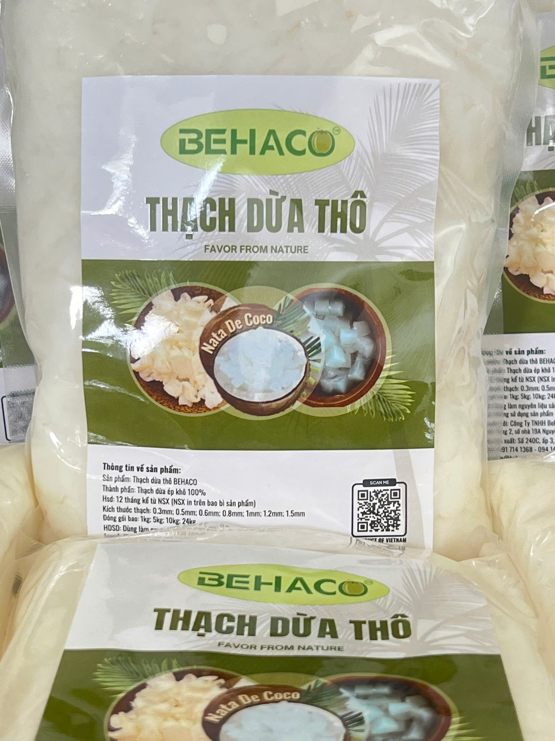 THẠCH DỪA ÉP KHÔ BEHACO - 5 LY Thạch dừa thô là lớp Hemicellulose, sản phẩm sinh khối đươc tạo thành bởi sự lên men của vi khuẩn Acetobacter xylinum trong môi trường nước dừa