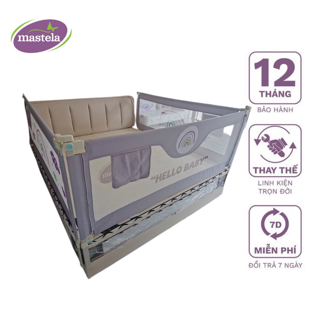 - Bố mẹ hoàn toàn yên tâm làm việc mà không sợ con bị tổn thương với sự bảo vệ của thanh chắn giường. Hướng dẫn bảo quản Bảo quản nơi khô ráo, thoáng mát, tránh ánh sáng trực tiếp Lưu ý Giá sản phẩm chỉ tính cho 1 thanh chắn giường Thông tin sản phẩm Thương hiệu: Mastela Chất liệu: Khung thép không gỉ, màn chắn làm bằng vải dù chắc chắn Màu sắc: Như hình Kích thước sản phẩm: 1,8mx0,65m; 2mx0,65m Mastela là thương hiệu chuyên phân phối về các sản phẩm đồ dùng cho trẻ sơ sinh. Các sản phẩm của Mastela đạt các tiêu chuẩn an toàn quốc tế ASTM, EN, BS. Mastela đã và đang được người tiêu dùng tại nhiều quốc gia trên thế giới tin tưởng, lựa chọn."