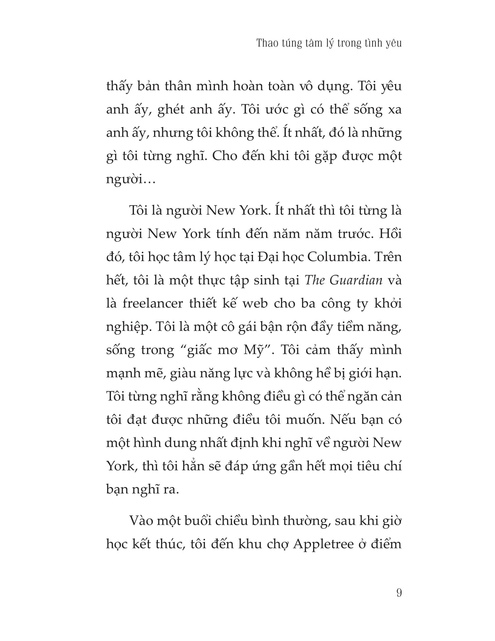 Bạn có tin vào những lời nói của đối phương, khiến bạn tự ti rằng bản thân chưa đủ tốt đẹp, giỏi giang không? Bạn nghĩ mình chỉ biết làm mọi thứ rối tung lên. Rất nhiều trục trặc xảy ra trong mối quan hệ là lỗi của bạn và bạn đáng phải chịu đựng những lời chỉ trích, chê bai của đối phương, đáng bị người kia đối xử lạnh nhạt. Tư duy này không hề đúng. Đừng để bị cuốn theo những lời lẽ thao túng của đối phương và để bản thân chìm trong biển suy nghĩ tiêu cực. Nếu bạn không cảm thấy hạnh phúc trong mối quan hệ tình cảm của mình, nhưng lại chưa đủ dũng khí và mạnh mẽ để thoát khỏi nó, cuốn sách này có thể giúp bạn.