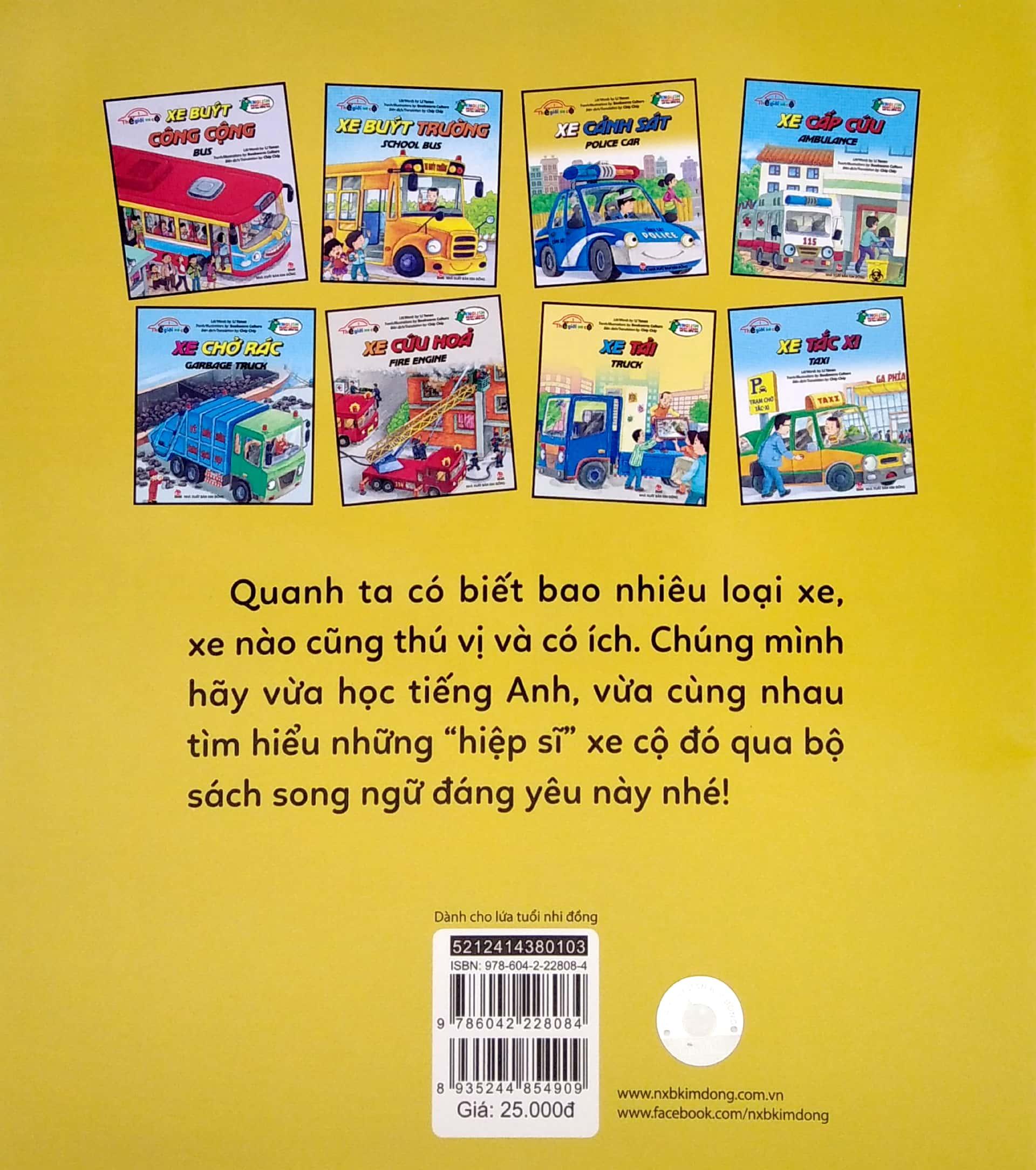 Quanh ta có biết bao nhiêu loại xe, xe nào cũng thú vị và có ích. Chúng mình hãy vừa học tiếng Anh, vừa cùng nhau tìm hiểu những “hiệp sĩ” xe cộ đó qua bộ sách song ngữ đáng yêu này nhé! Trọn bộ 8 cuốn: