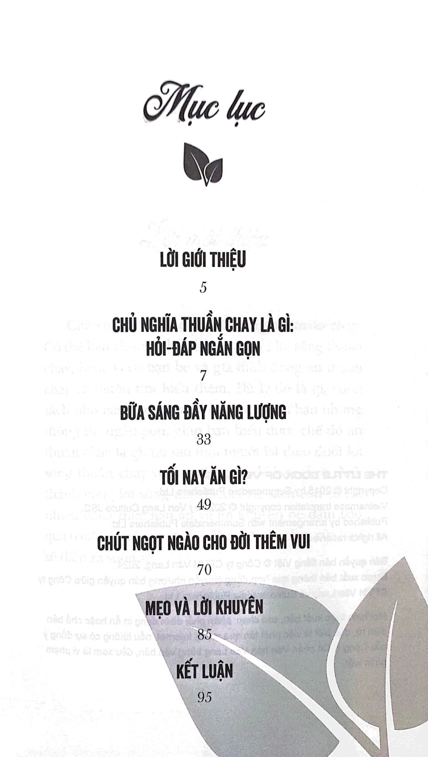 Có nhiều lý do khiến một người quyết định sống thuần chay – vì môi trường, vì đạo đức, vì sức khỏe, v.v. Cuốn sách hướng dẫn dễ đọc dễ làm này, với rất nhiều mẹo hữu ích về lối sống thuần chay, từ chuyện ăn uống cho đến ăn mặc và mua sắm, sẽ truyền cảm hứng cho bạn về những lợi ích tuyệt vời nhất của lối sống nhân đạo và không sát sinh này.
