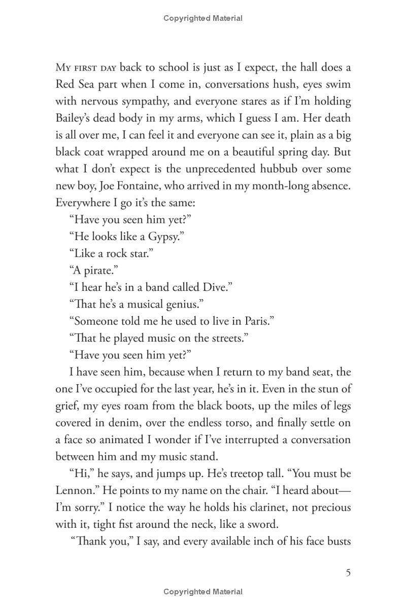 Adrift after her sister Bailey’s sudden death, Lennie finds herself torn between quiet, seductive Toby—Bailey’s boyfriend who shares Lennie's grief—and Joe, the new boy in town who bursts with life and musical genius. Each offers Lennie something she desperately needs. One boy helps her remember. The other lets her forget. And she knows if the two of them collide, her whole world will explode.