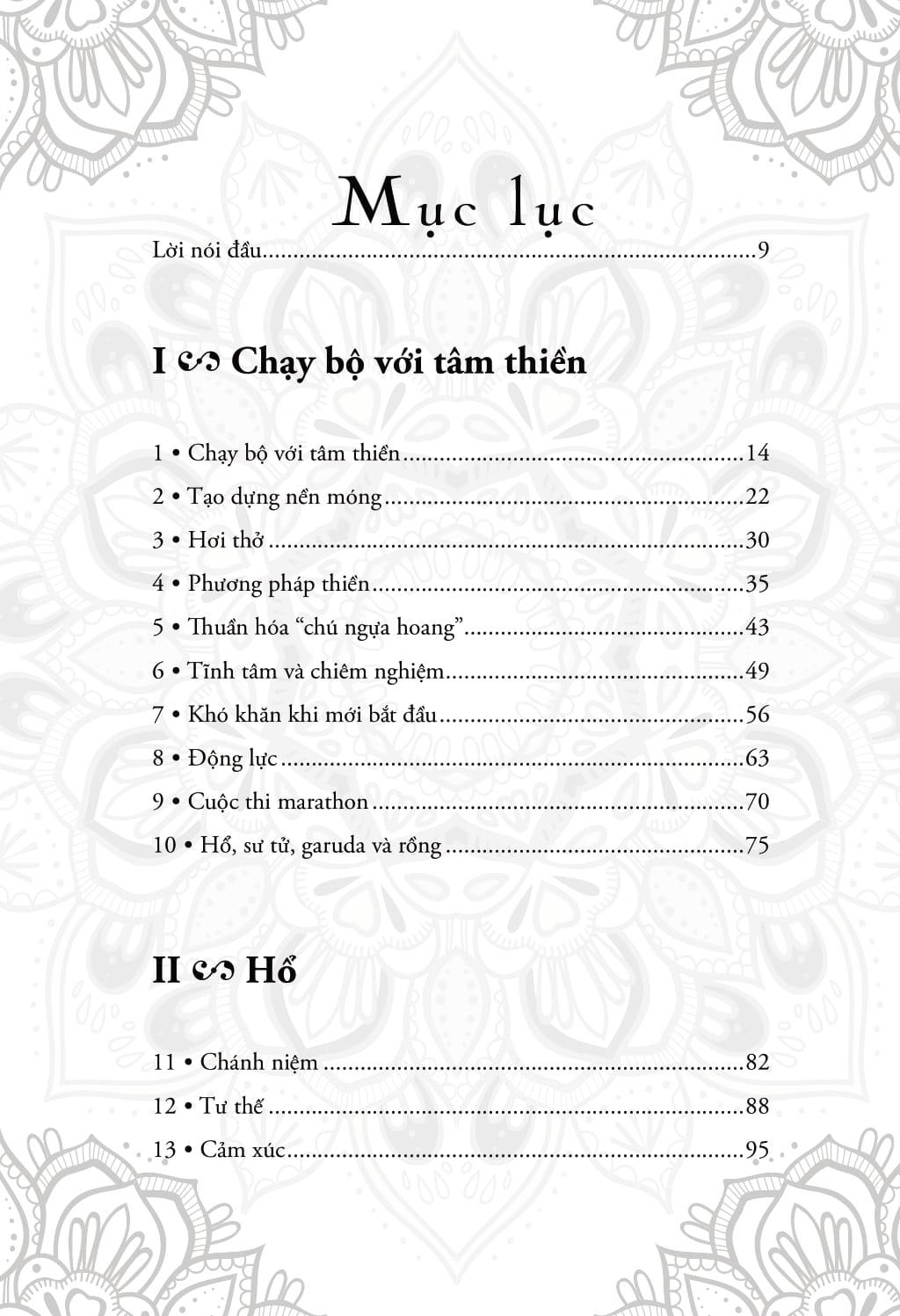 Tác giả không chỉ đưa ra những nguyên tắc thiền cơ bản mà ông đã đúc kết từ nhiều năm tu tập, mà còn chỉ rõ rằng bất cứ ai – không phân biệt độ tuổi, thể trạng hay trình độ – đều có thể thực hành việc kết hợp giữa thiền và chạy bộ. Thông qua những hướng dẫn cụ thể và lời khuyên sâu sắc, ông giúp người đọc hiểu cách tạo ra sự hòa hợp giữa cơ thể và tâm trí, từ đó đạt được sự bình an và cân bằng trong cuộc sống.
