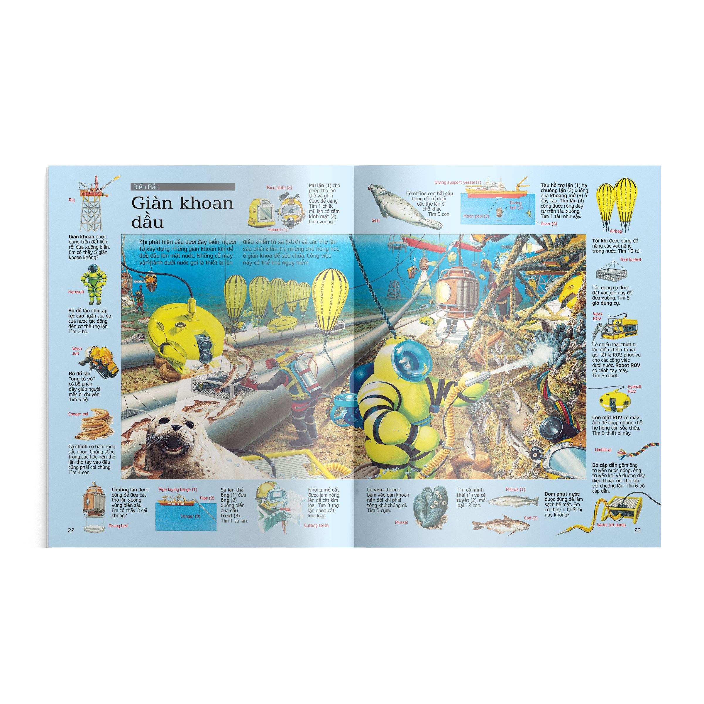 Mua tại TiktokThử tài tìm kiếm – Biển khơi Từ bạch tuộc khổng lồ và cá mập trắng đến những thợ lặn biển sâu và kho báu dưới biển, trong các trang của cuốn sách tranh tuyệt đẹp này có nhiều thứ để em tìm kiếm. Thử tài tìm kiếm – Biển khơi chứa đựng vô vàn thông tin thú vị về thế giới trong lòng biển, từ rạn san hô kì diệu đến đáy đại dương sâu thẳm .