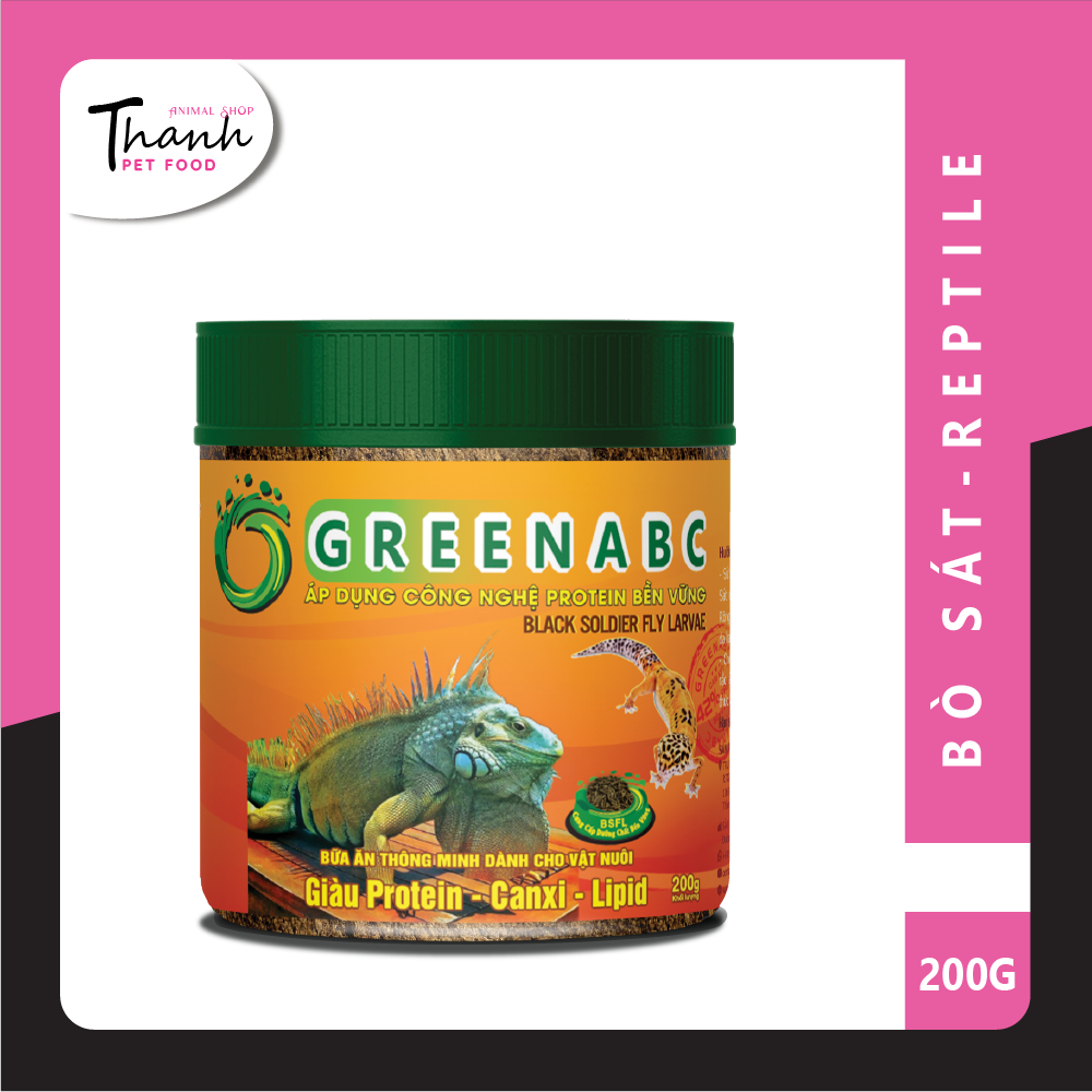 THỨC ĂN BÒ SÁT - BỔ SUNG DINH DƯỠNG PROTEIN, CANXI, LIPID GREENABC là thức ăn cao cấp dành cho các loại bò sát: IGUANA, BEARDED DRAGON, LEOPARD GECKO. Đặc biệt sản phẩm GREENABC được