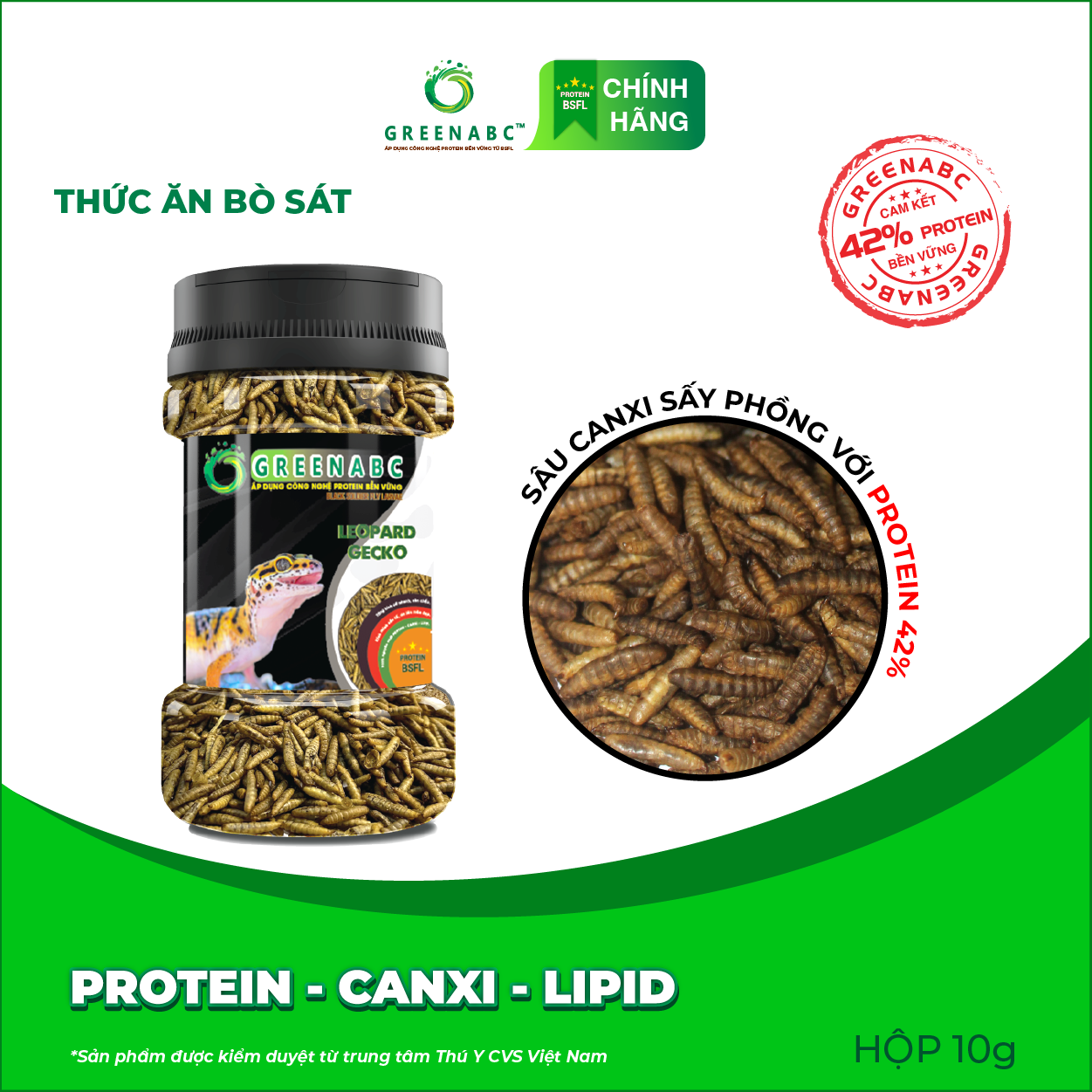 Mua tại TiktokGREENABC - THỨC ĂN DÀNH CHO THẰN LẰN DA BÁO - BỔ SUNG DINH DƯỠNG PROTEIN - CANXI - LIPID GREENABC là thức ăn bổ dưỡng dành cho THẰN LẰN DA BÁO. Đặc biệt sản phẩm GREENABC được sản xuất theo phương pháp Áp dụng công nghệ PROTEIN bền vững rất giàu PROTEIN – CANXI – LIPID có trong BSFL, đã được Mỹ (AAFCO) và EU chấp nhận đưa vào công thức cho ngành sản xuất thức ăn dành cho vật nuôi. Sản phẩm GREENABC cung cấp các giá trị dinh dưỡng bền vững cho vật nuôi, giúp cho Thằn Lằn Da Báo:
