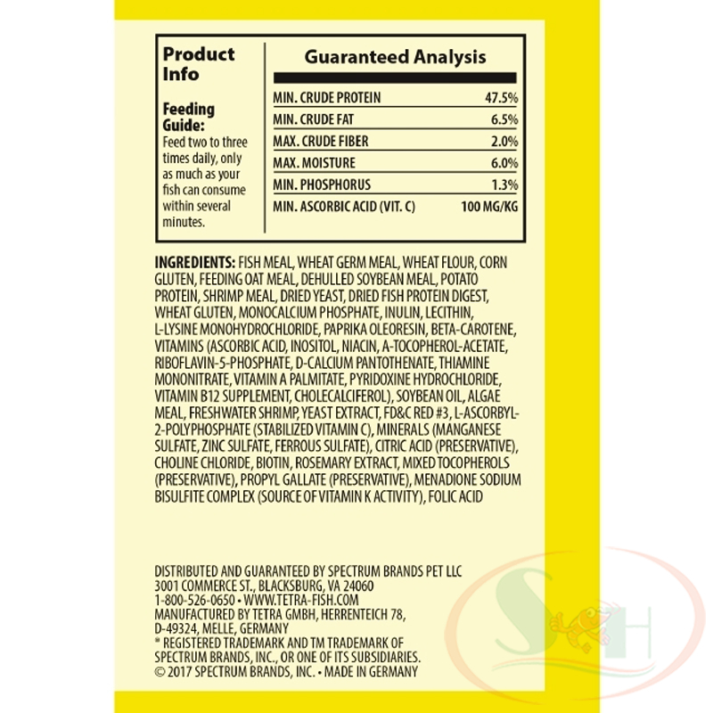 Thức ăn cá TetraColor XL Tropical Granules (Tetra Color) là dòng thức ăn cá cảnh được thiết kế cho các loài cá nhiệt đới có kích thước trung bình lớn như cá congo, cá dĩa, thần tiên... TetraColor được tăng cường thêm vitamin C và công nghệ ProCare tăng cường sức khỏe được cấp bằng sáng chế ở CHLB Đức. TetraColor XL Tropical Granules chứa dinh dưỡng thiết yếu thúc đẩy sự phát triển toàn diện, kích thích cá ăn uống và tiêu hóa tốt hơn, màu sắc rực rỡ hơn. Những hạt Tetra Color sẽ chìm chậm và được tiêu thụ ở tầng nước giữa và đáy bể. HƯỚNG DẪN SỬ DỤNG THỨC ĂN CÁ TETRACOLOR XL TROPICAL GRANULES (TETRA COLOR):