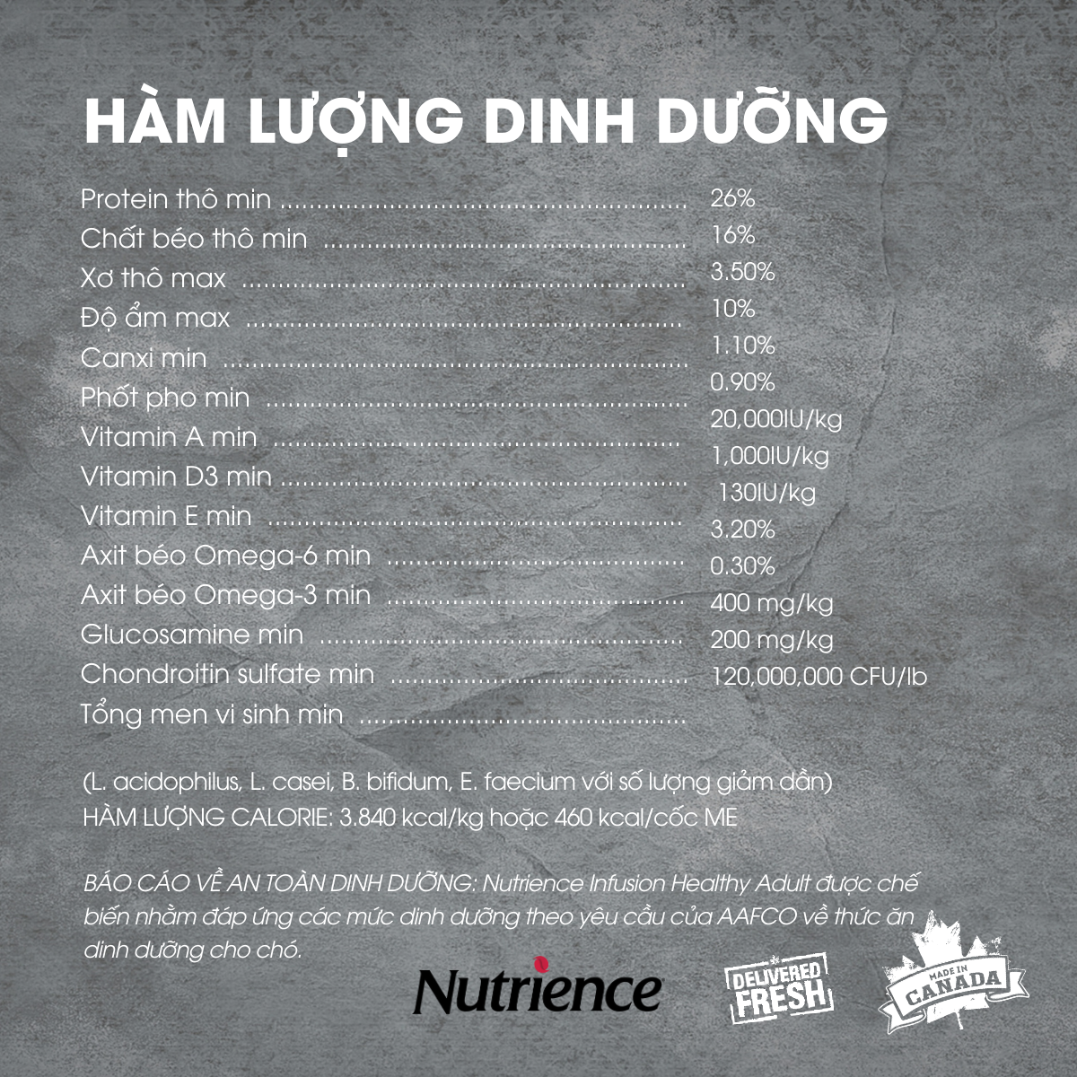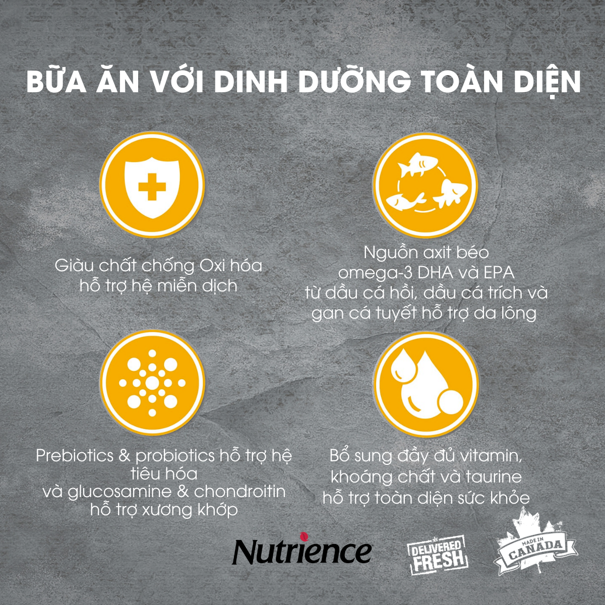 Nutrience Original Adult, Medium Breed cho Giống Chó Trung Bình được phát triển để đáp ứng các mức dinh dưỡng được thiết lập bởi hồ sơ dinh dưỡng thức ăn cho chó của AAFCO về duy trì sức khỏe toàn diện.