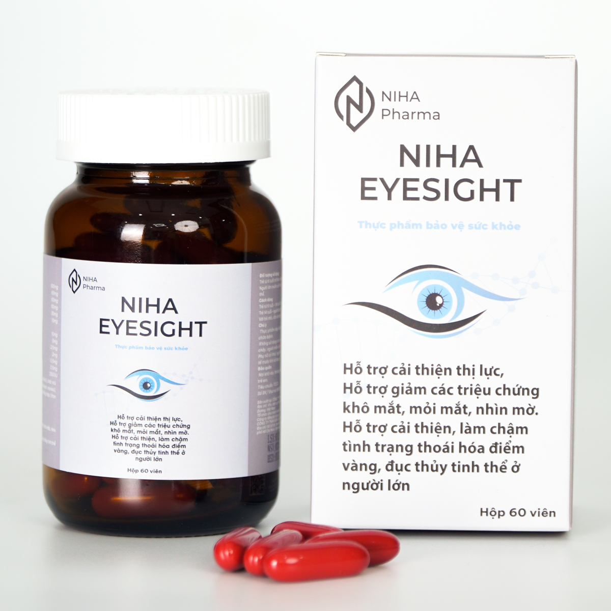Thực phẩm bảo vệ sức khỏe Niha Eyesight (Hộp 60 viên) Hỗ trợ chăm sóc mắt – Phù hợp cho người thường xuyên sử dụng thiết bị điện tử Công dụng: