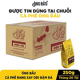 Với sản phẩm tươi sống, trọng lượng thực tế có thể chênh lệch khoảng 10%. Sở hữu nông trường cà phê CADA 100 năm tuổi, Cà Phê Ông Bầu khẳng định giá trị nguyên sơ trong từng hạt cà phê sạch được chế biến bằng công nghệ hiện đại kết hợp cùng kinh nghiệm cà phê truyền thống. Sản phẩm Cà phê rang xay Ông Bầu OB1 Đậm Đà: * 100% cà phê Arabica và Robusta, không độn bắp và đậu nành. * Vị đắng đậm, thoảng hương sô-cô-la, thơm nhẹ mùi khói * Quy cách đóng gói: Thùng 20 Túi 250g - Rang Xay Là nhãn hiệu cà phê thật từ 100% cà phê rang xay nguyên chất mùa vụ mới. Thành phần 100% Robusta và Arabica với tỉ lệ Vàng trong làng cà phê rang mộc Được rang Mộc bởi máy rang cao cấp với công nghệ lưu giữ hương trọn vẹn. Cà phê truyền thống, đúng điệu của người Việt được tuyển chọn, pha chế từ những hạt cà phê Robusta được chọn lọc tại nông trường CADA với lịch sử hơn 100 năm tuổi. Hương thơm mộc mạc của "cà phê thật" bao giờ cũng khiến chúng ta say đắm. Công thức dành riêng cho cà phê hương vị chuẩn gu việt Nam, được phối trộn hoàn hảo giữa hạt Robusta và Abrabica mang đến cho bạn hương vị cà phê mộc ngon như uống tại quán Ông Bầu.