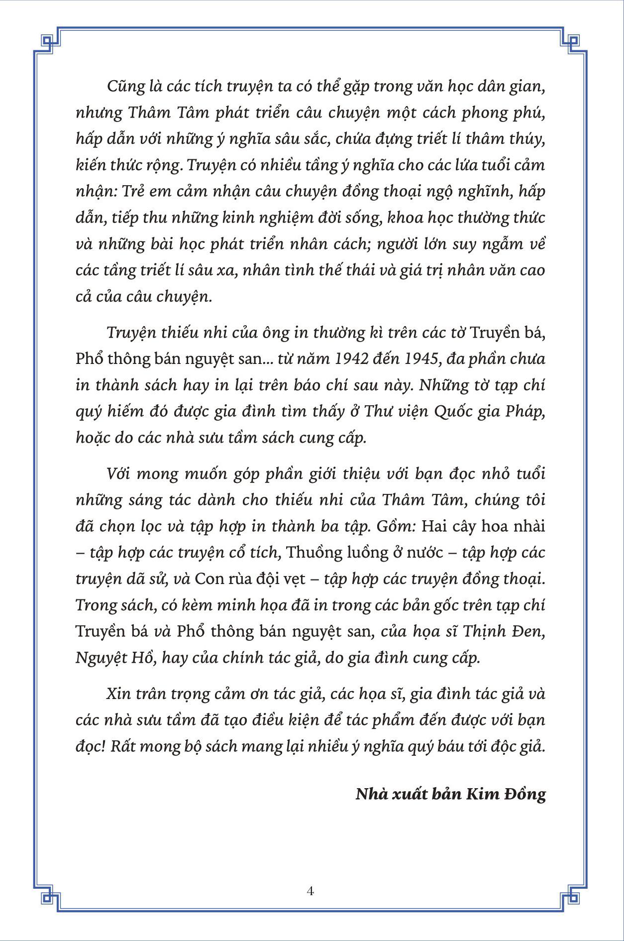 Bao trùm trong sáng tác của Thâm Tâm là màu sắc văn hóa Đông Phương đặc sắc. Có lẽ vì vậy truyện cổ tích, dã sử và đồng thoại viết cho thiếu nhi của ông rất gần gũi, tựa như những sáng tác dân gian, nhưng lại có những nét mới lạ và độc đáo.