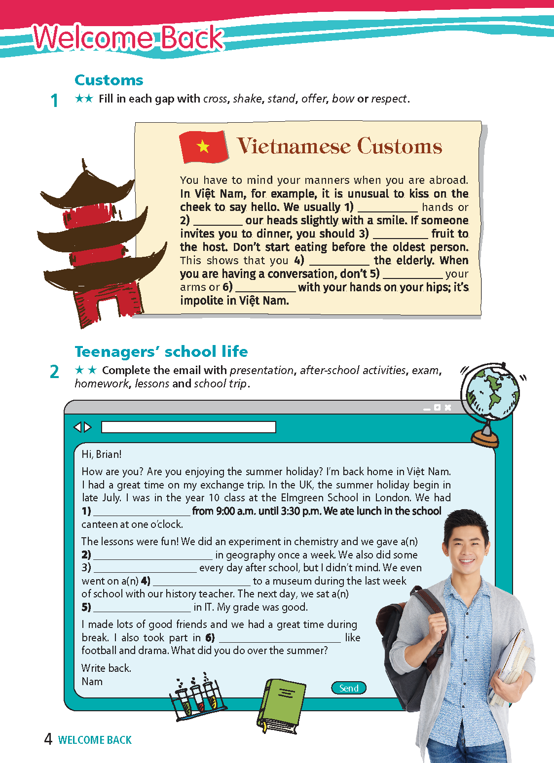 Tiếng Anh 9 Right On (WORKBOOK) WELCOME BACK (Bài 1,2 Trang 4)