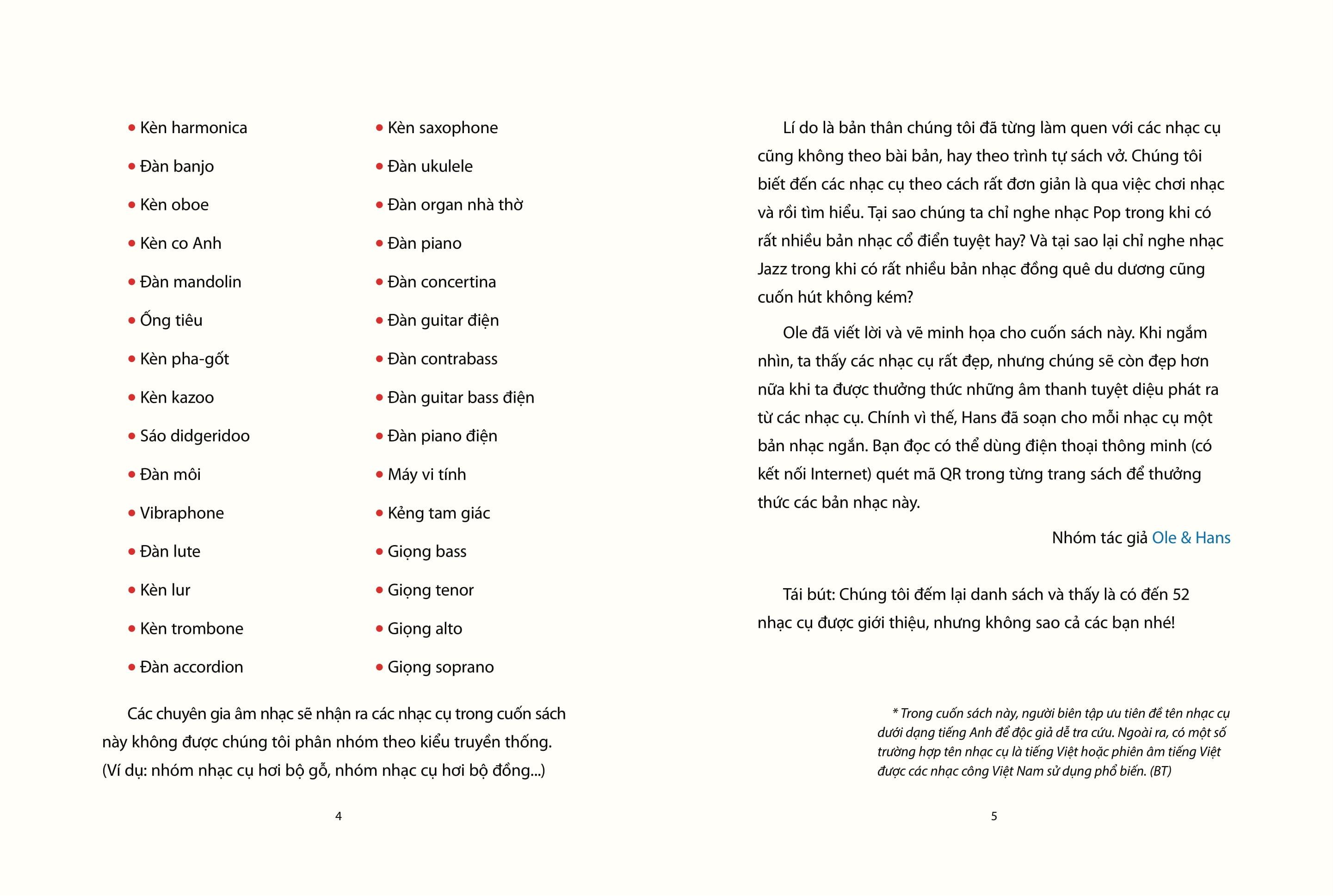 Tiếng Gì Hay Thế! - 50 Nhạc Cụ Và Những Âm Thanh Kì Diệu Khi ngắm nhìn, ta thấy các nhạc cụ rất đẹp, nhưng chúng sẽ còn đẹp hơn nữa khi ta được thưởng thức những âm thanh tuyệt diệu từ các nhạc cụ phát ra. Trong cuốn sách này, bạn đọc sẽ được khám phá hơn 50 nhạc cụ nổi tiếng thế giới thông qua những mô tả ngắn gọn, tranh vẽ ngộ nghĩnh và lắng nghe những bản nhạc do chính tác giả soạn và sản xuất để minh họa cho từng nhạc cụ. Chắc chắn đây sẽ là một bước khởi đầu vô cùng lí thú cho các bạn nhỏ (và cả người lớn) bước vào thế giới âm nhạc đầy màu sắc.