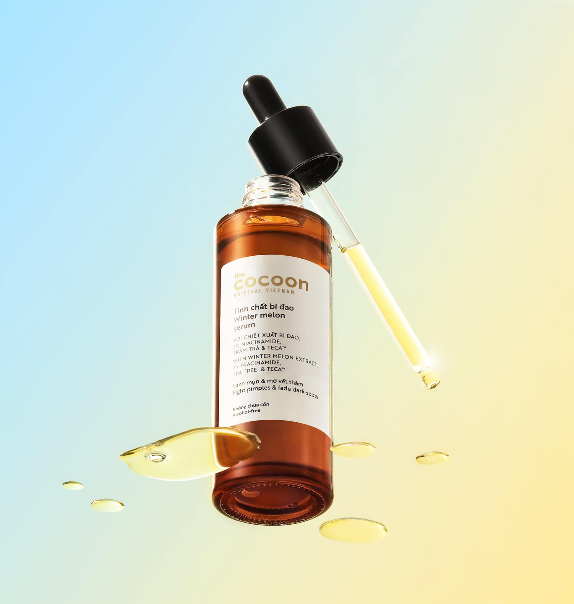 Với các thành phần từ thực vật làm chủ đạo gồm bí đao, rau má và tràm trà, bổ sung thêm 7% niacinamide (vitamin B3) - tinh chất bí đao cocoon sẽ phục hồi mạnh mẽ tình