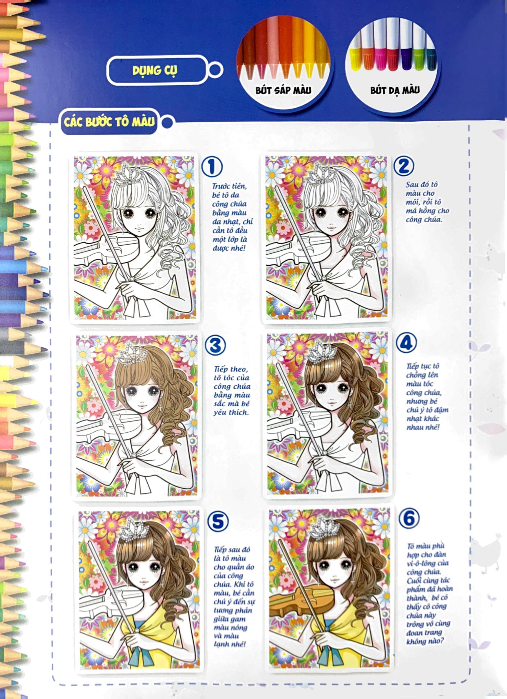 Tô Màu Công Chúa Xinh Đẹp là bộ sách bao gồm 6 cuốn với những hình ảnh các nàng công chúa xinh đẹp để các bé thỏa sức sáng tạo màu sắc cho những tấm hình. Bộ sách sẽ giúp các em phát huy sự sáng tạo cùng việc làm quen với tô màu, hội họa sớm nhất.