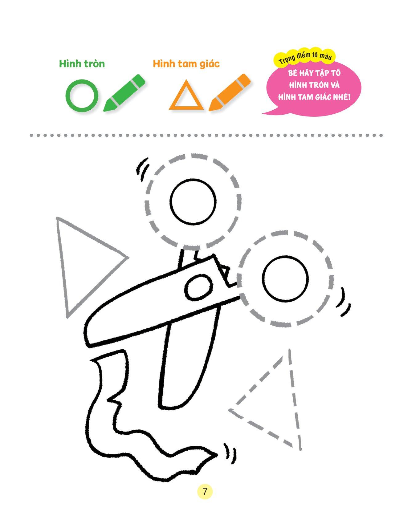 Bộ sách khuyến khích trẻ tự do sáng tạo và phối màu, kích thích trí tưởng tượng, giới thiệu thêm các khái niệm cơ bản về hình học từ các hình vẽ thân quen với bé.