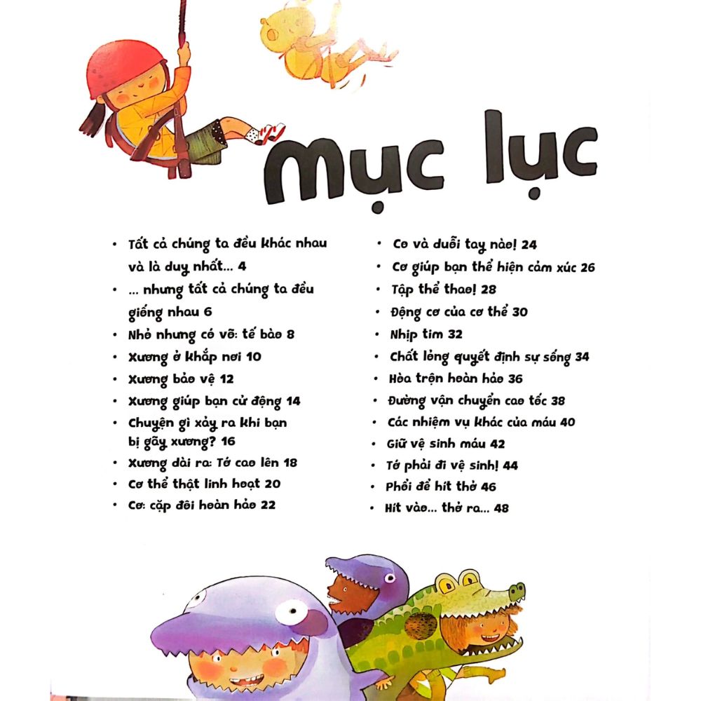 Cơ thể mới lạ lùng làm sao! Hãy mở sách, rồi bạn sẽ khám phá ra cơ thể và các cơ quan của bạn như thế nào, chúng hoạt động ra sao. Vì sao xương lại cứng? Ho và hắt xì có ích lợi gì? Bạn có biết cơ quan lớn nhất cơ thể là da không? Bạn sẽ tìm ra đáp án cho tất cả những thắc mắc đó và nhiều hơn nữa, đồng thời bạn sẽ yêu những minh họa màu đáng yêu trong từng trang sách. Đừng bỏ qua cuốn sách này nhé!