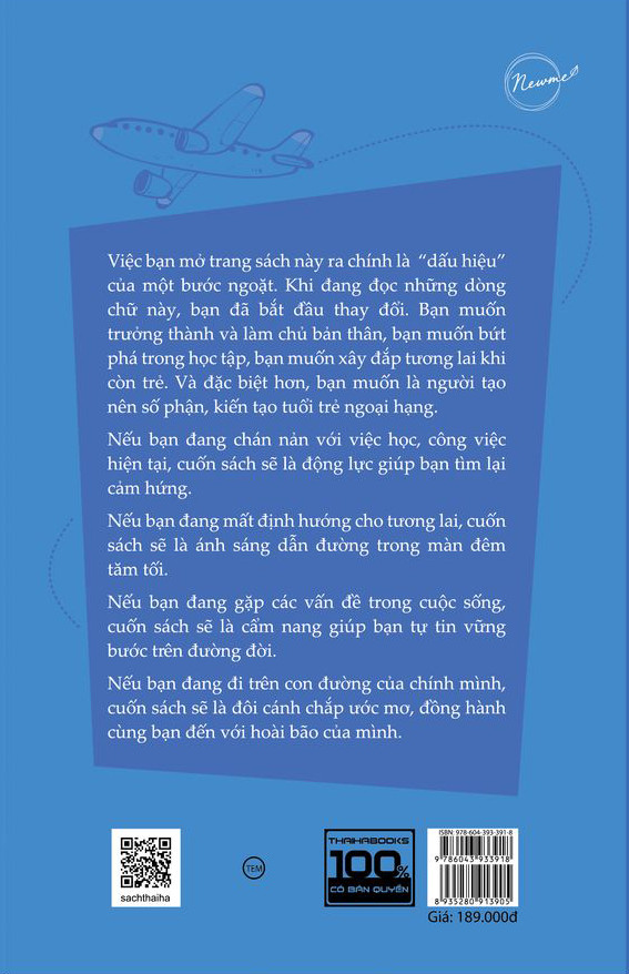 Đầu tiên, bạn sẽ hiểu rõ xuất thân và nghị lực của tôi, lý do vì sao tôi khác biệt, vì sao tôi thay đổi. Qua đó, bạn sẽ có niềm tin hơn vào chính bản thân mình và xây dựng một nguồn động lực mạnh mẽ bên trong bạn, đó chính xác là nội dung của chương một. Ở chương hai, tôi tiếp tục kể câu chuyện của mình, những năm tháng cấp ba và những mục tiêu điên rồ ở thời điểm ấy. Kể về những lần bạn bè chế nhạo vì tôi quá ngông cuồng, và vì tôi dám mơ những giấc mơ điên rồ. Nhưng hơn hết, tôi đã hoàn thành nó và đang đạt được những kết quả không tưởng tại thời điểm hiện tại, và như đã chia sẻ, tôi sẽ hướng dẫn cho bạn từng bước cách hiểu rõ bản thân và vẽ tấm bản đồ tương lai cho mình. Còn nội dung của chương ba, bốn, năm, sáu ư? Tôi đưa cho bạn chính xác công thức để trở thành thiên tài. Tôi dám chắc rằng, một người bình thường cũng có thể làm nên những thứ vĩ đại, phi thường khi sở hữu các phương pháp ấy. Đấy chính xác là những gì tôi đã làm từ một học sinh nghiện game trở nên nghiện học, tự học trong suốt thời áo trắng, lấy gốc môn Hóa và đứng nhất trường… Bạn sẽ không tìm thấy ở đâu có tấm bản đồ ngầm để trở thành người đứng TOP 20%, rồi 10% và vươn đến 5% trong mọi lĩnh vực như vậy, chỉ cần bạn làm đúng công thức. Chương bảy, là chương quan trọng nhất, hay nhất… nói về 4 nguồn năng lượng giúp con người sống trọn vẹn và kiểm soát cuộc sống. Chỉ cần bạn sở hữu được 4 nguồn năng lượng này, bạn sẽ hạnh phúc trên chặng đường chinh phục hoài bão. Tôi đã hướng dẫn từng bước thông qua những nghi thức đơn giản mỗi ngày để bạn có thể áp dụng và trở nên bất bại trong mọi cuộc đua. Đấy chính xác là những gì tôi đang huấn luyện bản thân mình. Còn ở chương cuối, tôi chỉ tản mạn tại sao chúng ta nên học tập thật tốt, phải đạt điểm số tối đa trong việc thi đại học… giúp bạn hiểu rõ hơn về cuộc chơi này và những lợi ích mà cấp ba mang lại. Đây là tóm tắt sách ư? Tất nhiên là không, làm sao có thể gói gọn mọi điều trong vài câu chữ như thế này được. Tôi mới chỉ nêu vài ý nổi bật để giúp bạn hiểu rõ hơn về những chặng đường mà chúng ta sẽ đi qua. Tôi đã hoàn thành nhiệm vụ của mình, bây giờ đến lượt bạn. Mục lục: Chương 1: Sinh nhật “thứ hai” của tôi và bạn Chương 2: Định hướng tương lai khi là học sinh Chương 3: Quan trọng là năng suất làm việc Chương 4: Công thức trở thành thiên tài học tập Chương 5: Phương pháp học tập đỉnh cao Chương 6: Bản đồ ngầm đi đến cánh cửa đại học Chương 7: Đời thay đổi khi bạn thay đổi Chương 8: Lời gửi gắm cho tuổi trẻ rực lửa Trích đoạn sách hay: “Tiền, không phải là mục đích cuối cùng, giàu có cũng chỉ là trải nghiệm. Mọi thứ vương vấn lại trong ký ức trước khi bạn xuống với ông bà tổ tiên là trải nghiệm. Hãy vươn đôi cánh nhỏ, bay vào không gian, nhìn ngắm thế giới này.” “Có người bảo xác suất để được sinh ra trên đời là 1 phần 4 trăm nghìn tỷ. Nên tôi chính là kết quả của một phép màu nhiệm, đang sống và đang thở. Mỗi giây phút tôi có được trên đời đều là món quà quý giá, tôi sẽ không để nó trôi qua vô nghĩa. Mỗi ngày trôi qua miễn là vẫn còn sống, tôi sẽ tốt hơn bản thân của ngày hôm qua. Khi cuộc sống khó khăn, tôi sẽ nỗ lực hơn nữa để vượt qua. Tôi không tìm lý do để thoái thác. Tôi đương đầu với những thử thách và chinh phục chúng. Tôi từ chối trở thành người ở mức trung bình. Cho dù cả thế giới có cố dìm tôi xuống, bằng mọi giá tôi sẽ vươn lên. Niềm tin tôi đặt vào bản thân mạnh mẽ hơn bất kì điều gì. Không có gì gọi là quá sức, ép buộc hay mù quáng đối với tôi. Nếu bạn chạy 5 dặm tôi sẽ chạy 7 dặm. Nếu bạn đẩy tạ 100kg tôi sẽ đẩy 110kg. Tôi sẽ thắng hoặc Tôi sẽ chết. Đó mới chính là tôi. Tôi chưa từng gặp một trở ngại nào mà không thể vượt qua. Thế gian không phải chỉ toàn cho ta những rào cản. Nó còn mang lại những cơ hội bất tận. Nếu vấp ngã tôi sẽ đứng dậy. Và nhờ cú ngã đó tôi tiến bộ hơn. Hai chữ “không thể” chỉ làm cho khao khát thành công của tôi bùng cháy dữ dội hơn mà thôi. Tôi biết rằng con đường ít người đi là con đường khó khăn. Nhưng việc chuyển hướng không bao giờ là lựa chọn của tôi. Người duy nhất chịu trách nhiệm cho sự thành công của tôi chính là tôi. Đến giây phút cuối cùng, khi nhìn lại cuộc đời mình, tôi sẽ không bao giờ hối hận. Vì tôi đã cố gắng hết mình. Những thứ tôi đã hy sinh: mồ hôi, nước mắt và máu. Vô số giờ luyện tập cực khổ, tất cả sẽ không là vô ích. Đó là ý chí làm nên nhà vô địch. Và đó cũng chính là tôi.”