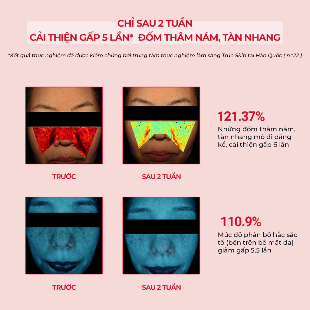 - Cải thiện thâm nám, tàn nhang: 121,37%